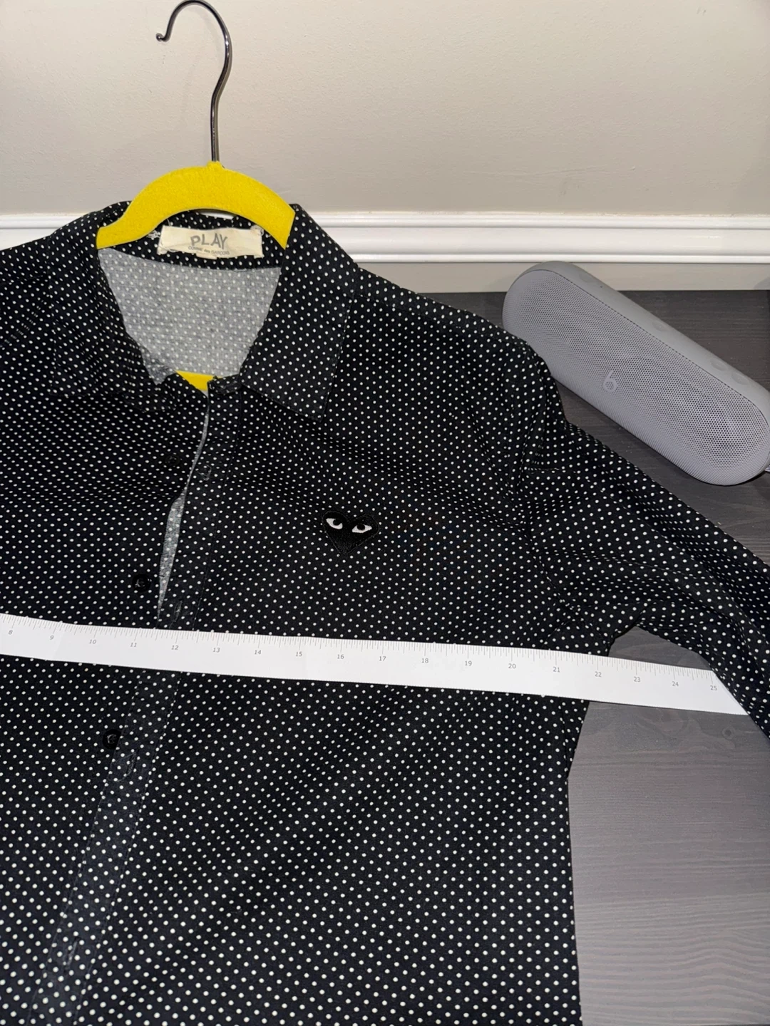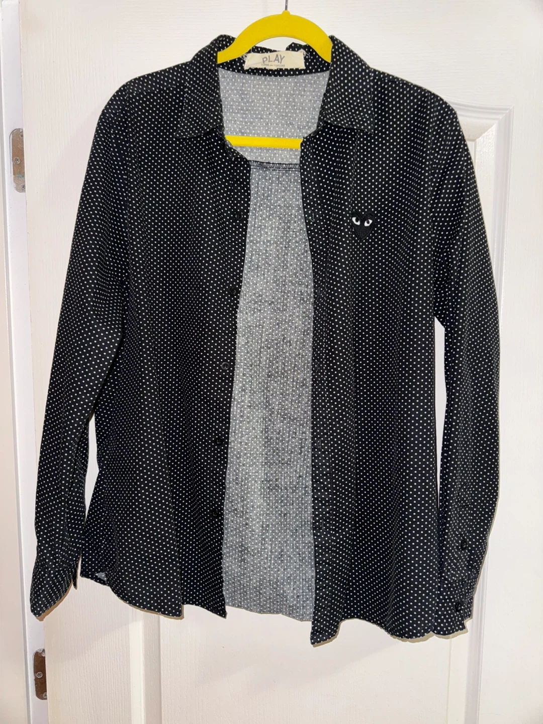 Vintage Comme des Garçons PLAY shirt with a polka dot pattern. It features the iconic heart logo.