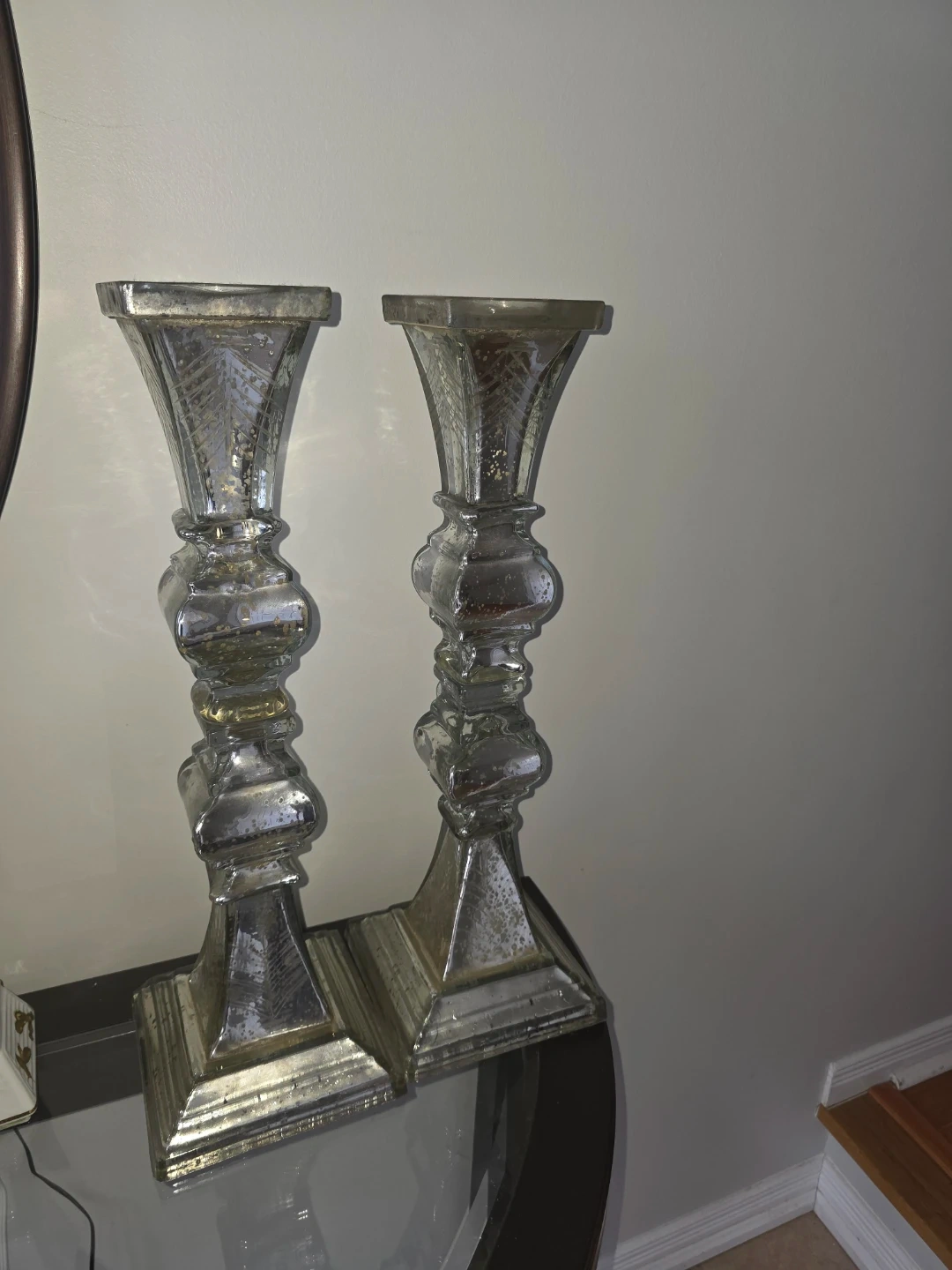 Buy & SellSilver Mercury Glass Candle Holders, 52cmSilver Mercury Glass Candle Holders, 52cm$35Selling a pair of silver mercury glass candle holders. They are approximately 52cm tall and would make a lovely addition to any roomConditionLike newWHERE TO MEETCheck LocationView MapSELLERverifiedS NurEbenezer16413 reviews0 chats·0 favorites·12 viewsSEND CHAT TO SELLERHi S Nur! I’m interested in your listing.Hi S Nur! I’m interested in your listing.Get the Karrot app to chatSign In to chat
