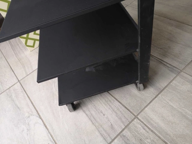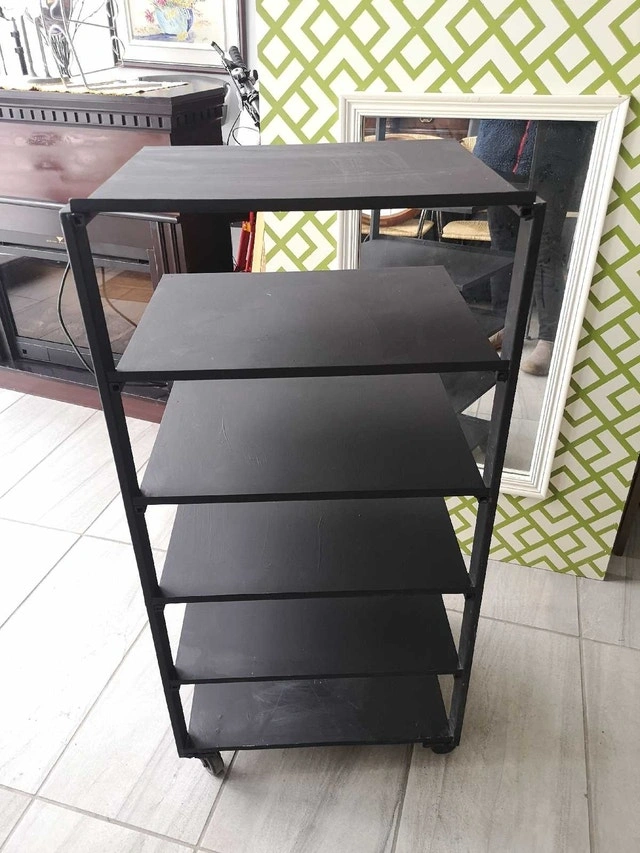This sturdy, used rolling shelf rack is perfect for adding extra storage to any room. With its six shelves and durable construction, it's ideal for organizing books, tools, or displaying your favourite items. Here are its specifications: