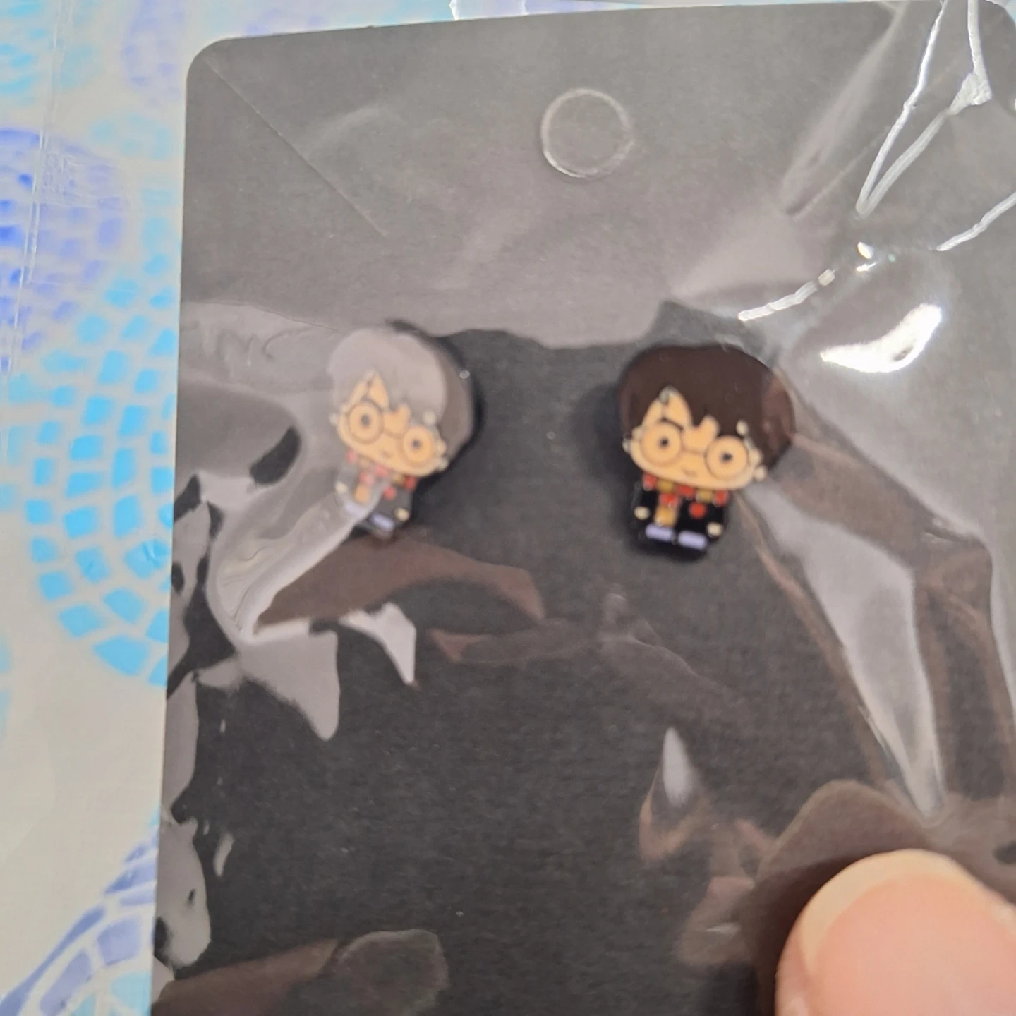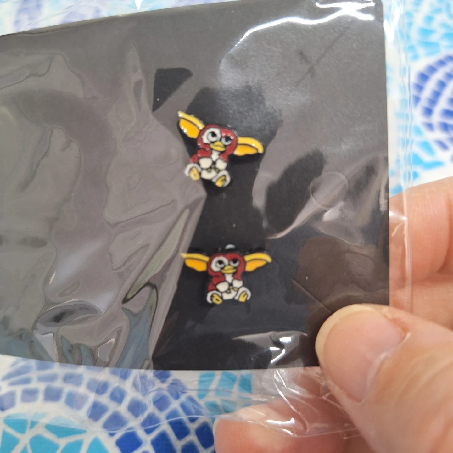 This set includes stud earrings featuring characters from Harry Potter, Dexter's Laboratory, Gremlins, IT, and The Legend of Zelda. They're made of durable metal with colourful enamel designs. A fun accessory for any fan!