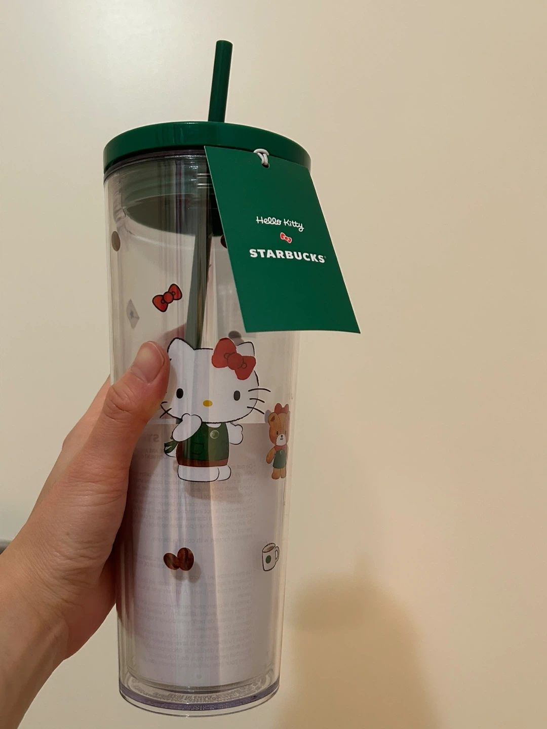 Here's a super cute brand new Starbucks Hello Kitty tumbler! It's in great condition and ready to keep your drinks cold or hot. Perfect for any Hello Kitty or Starbucks fan!