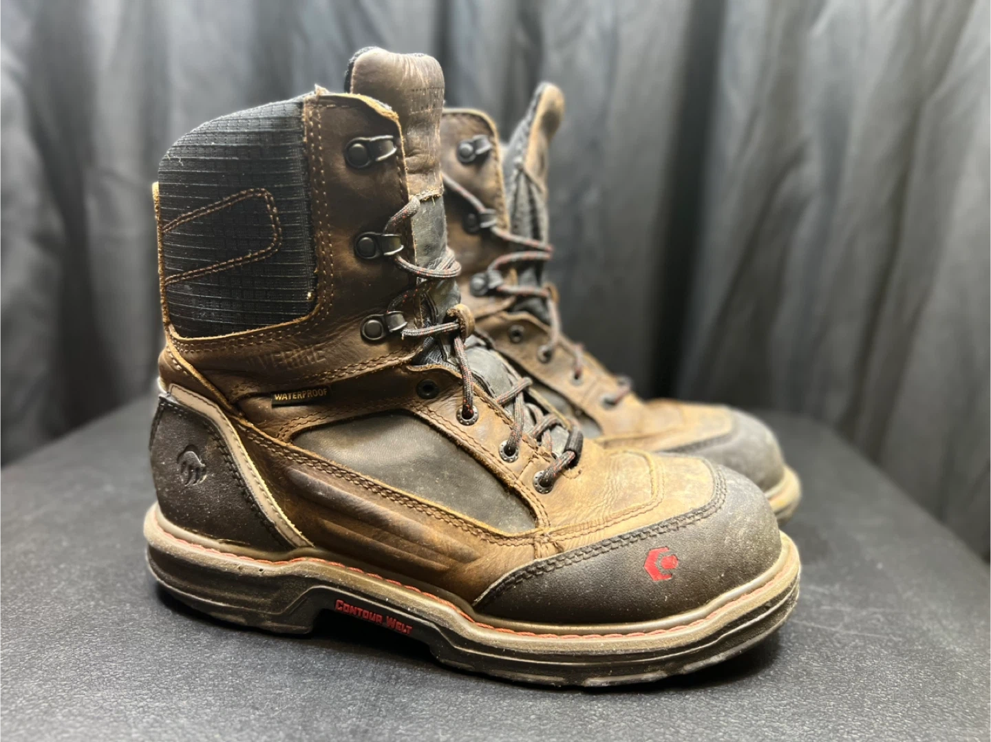 These Wolverine work boots are built for tough jobs. They're waterproof and feature leather uppers. They're designed with Contour Welt construction. Built for durable, all-day wear on the job site!