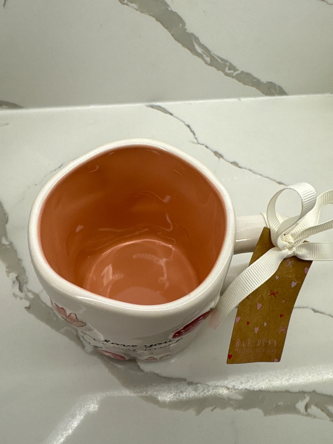 This Rae Dunn mug features a sweet "love you berry much" sentiment with strawberry and flower designs. It's perfect for gifting to someone special or for enjoying your morning coffee or tea. The inside is a vibrant coral colour.