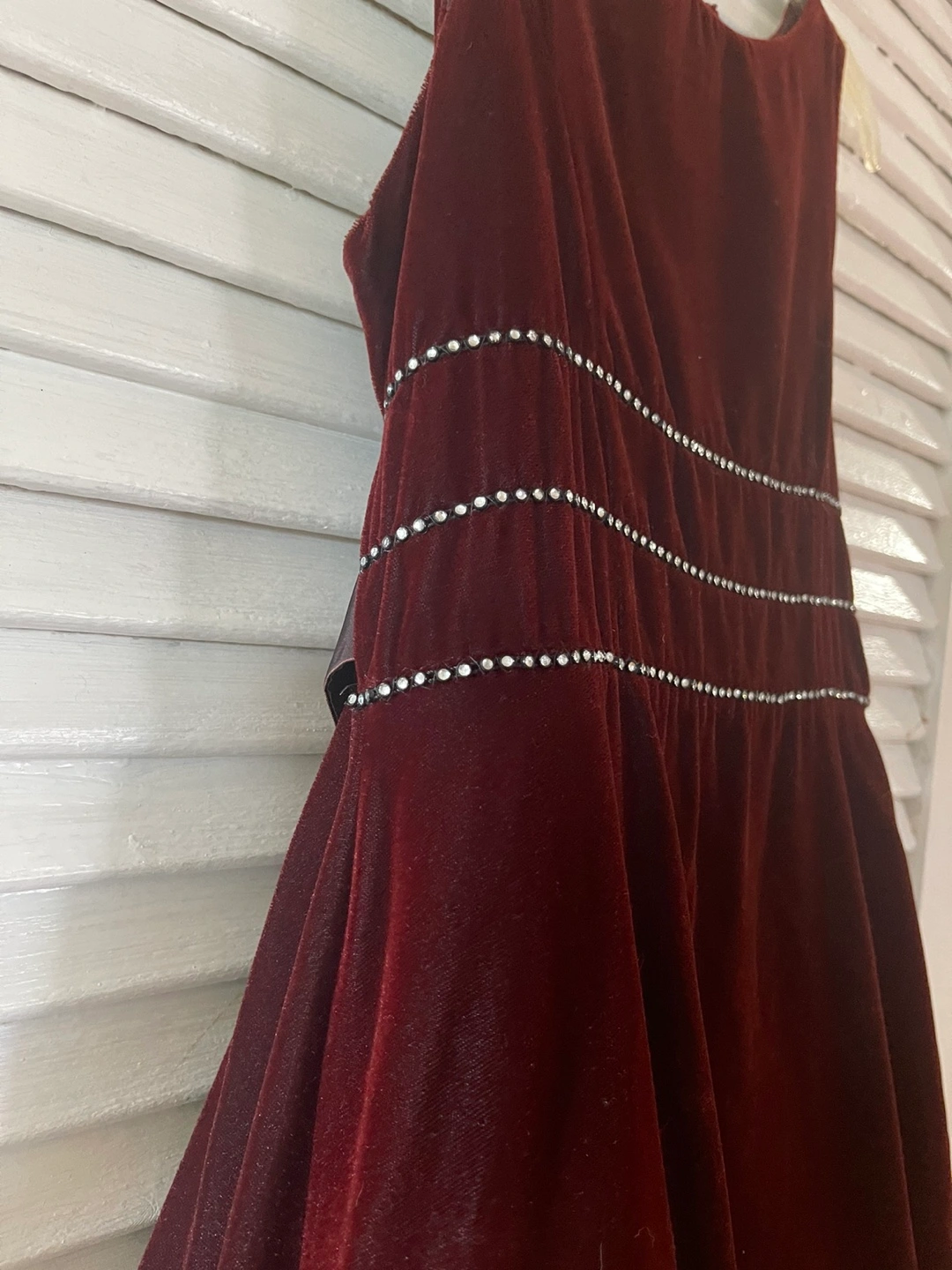 #ThriftyPicks Burgundy Velvet Dress with Rhinestone Detail