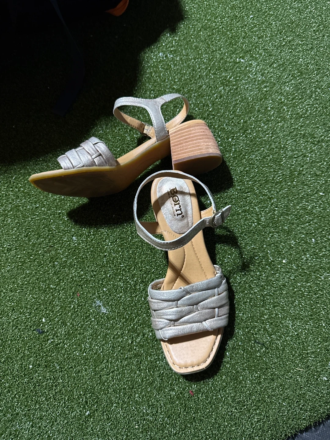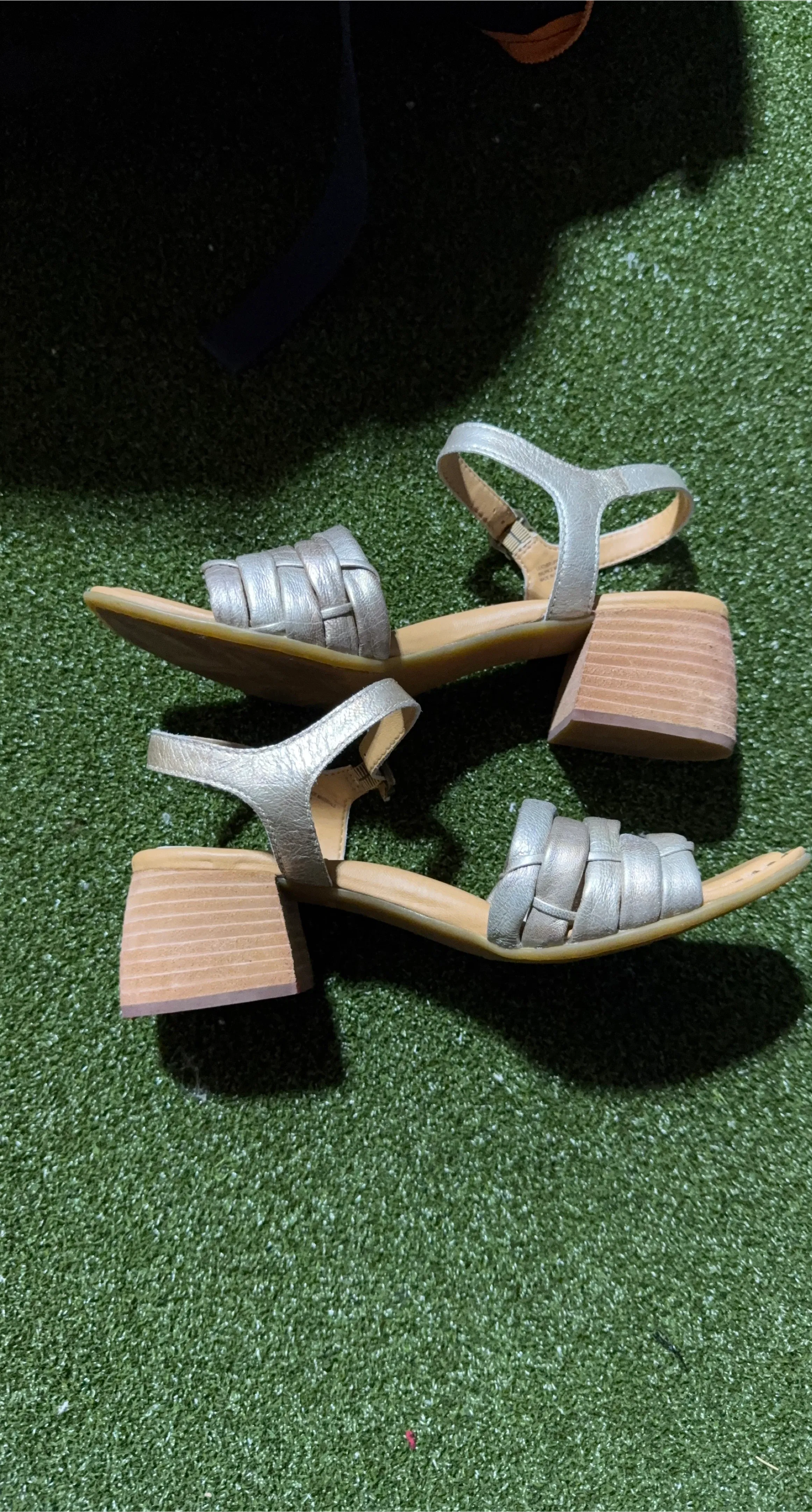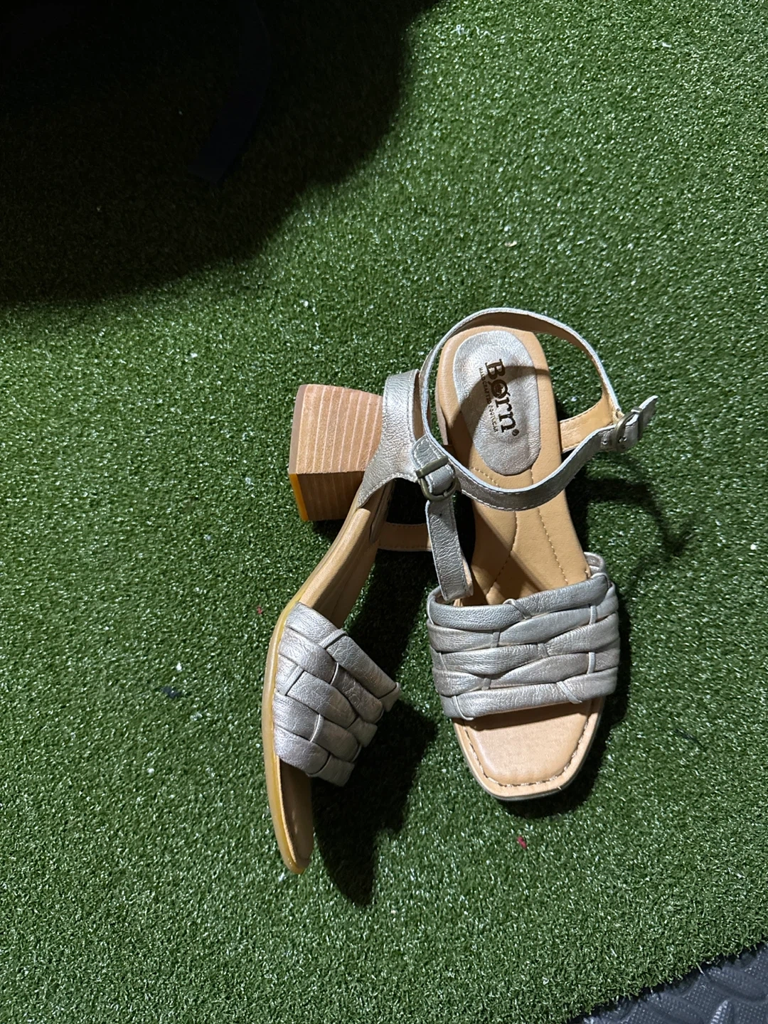 Born sandals in a stylish silver colour. They feature a woven front strap and an adjustable ankle strap. The block heel provides a comfortable lift.