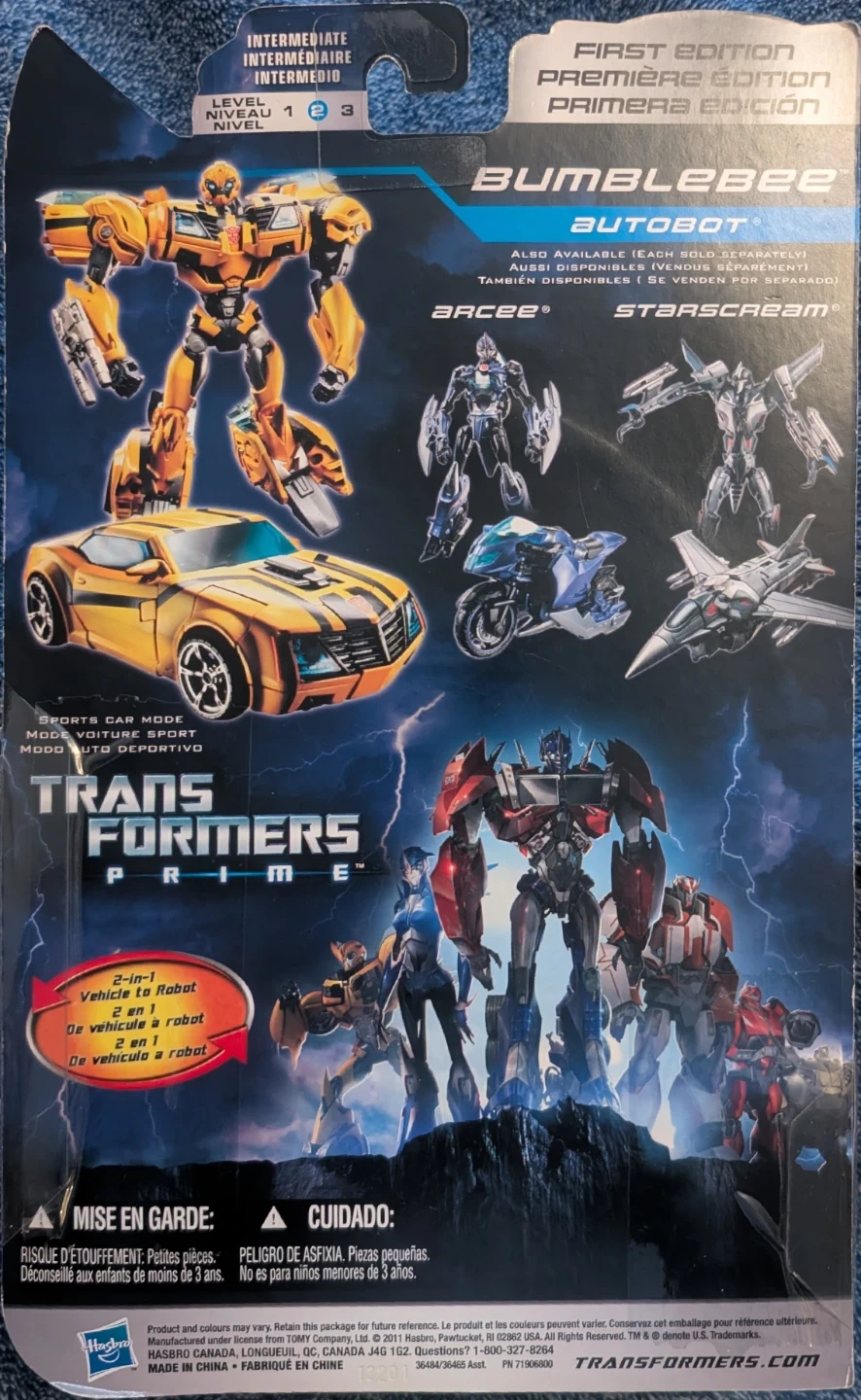 This deluxe size Transformers Prime, first edition, Bumblebee action figure transforms from a sports car to robot, and back again.
