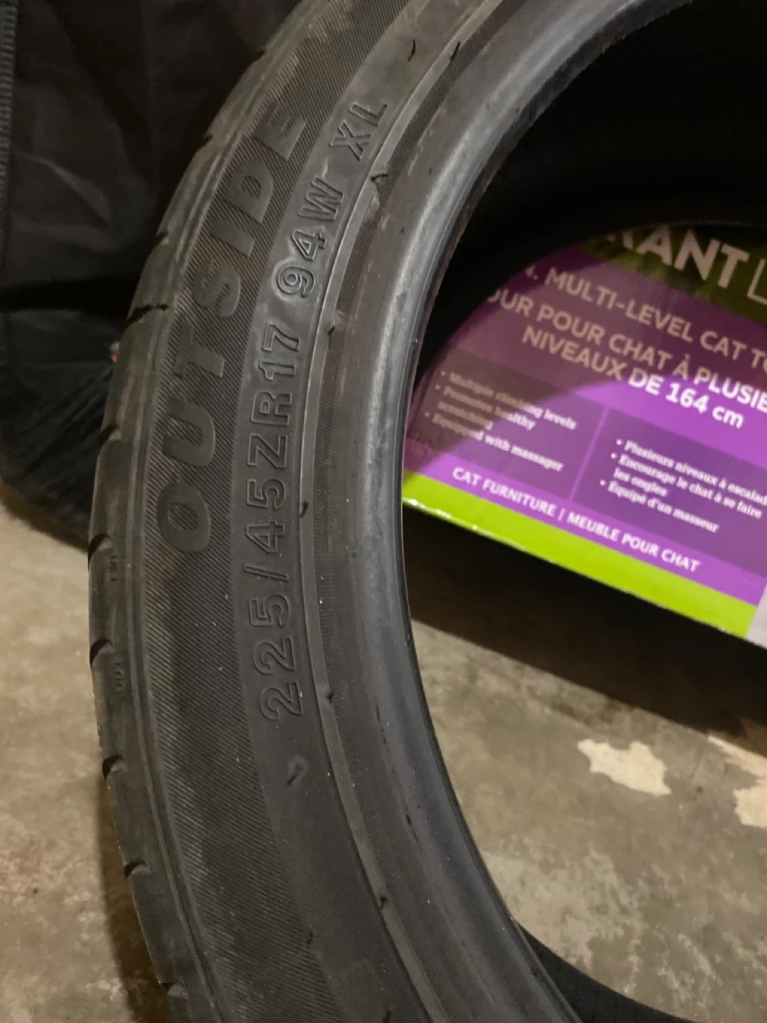 Buy & SellSet of 4 Tires 225/45ZR17 94W XLSet of 4 Tires 225/45ZR17 94W XL$185Set of four used tires. Tire size is 225/45ZR17 94W XL. These would be good for a replacement set.ConditionGoodWHERE TO MEETCheck LocationView MapSELLERJJBeechwood W50 reviews2 chats·1 favorites·52 viewsSEND CHAT TO SELLERHi JJ! I’m interested in your listing.Hi JJ! I’m interested in your listing.Get the Karrot app to chatSign In to chat