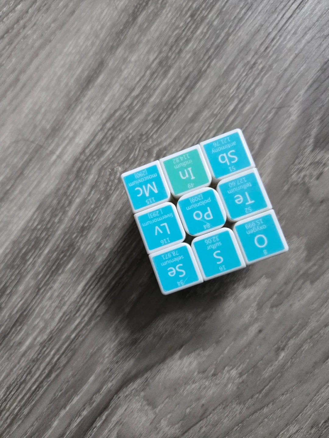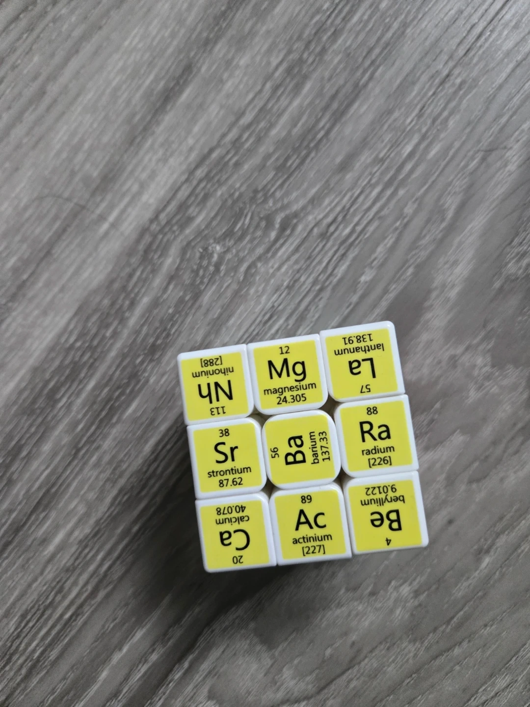 A fun puzzle cube featuring elements from the periodic table. It's a great way to learn element symbols, atomic numbers, and atomic masses. Perfect for students or science enthusiasts!