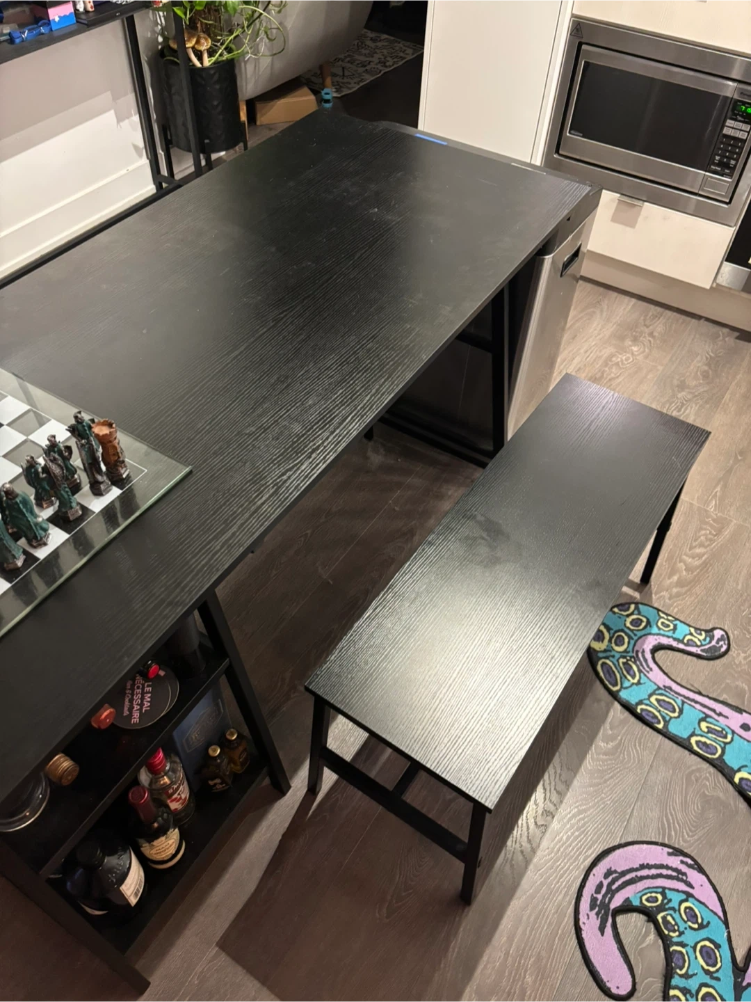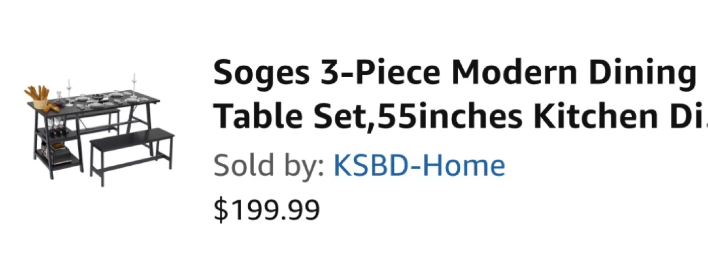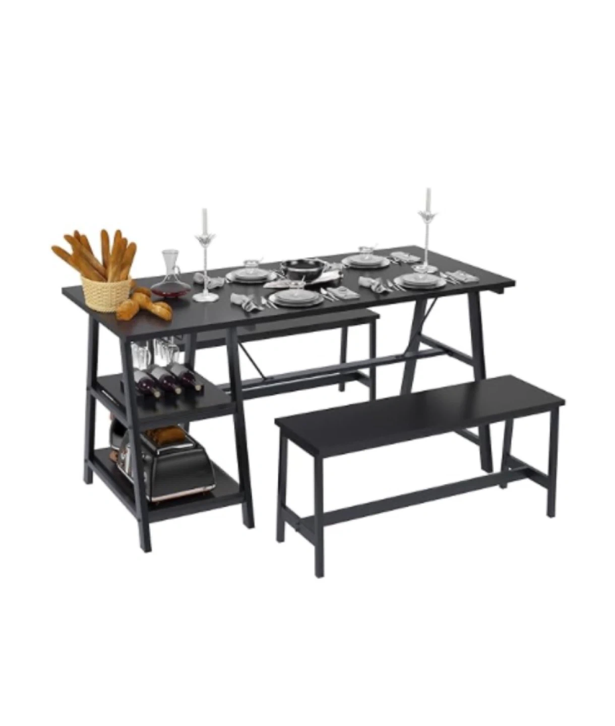 Complete Set: Includes the 55-inch dining table and two matching backless benches.
