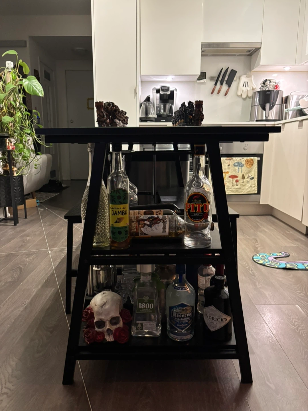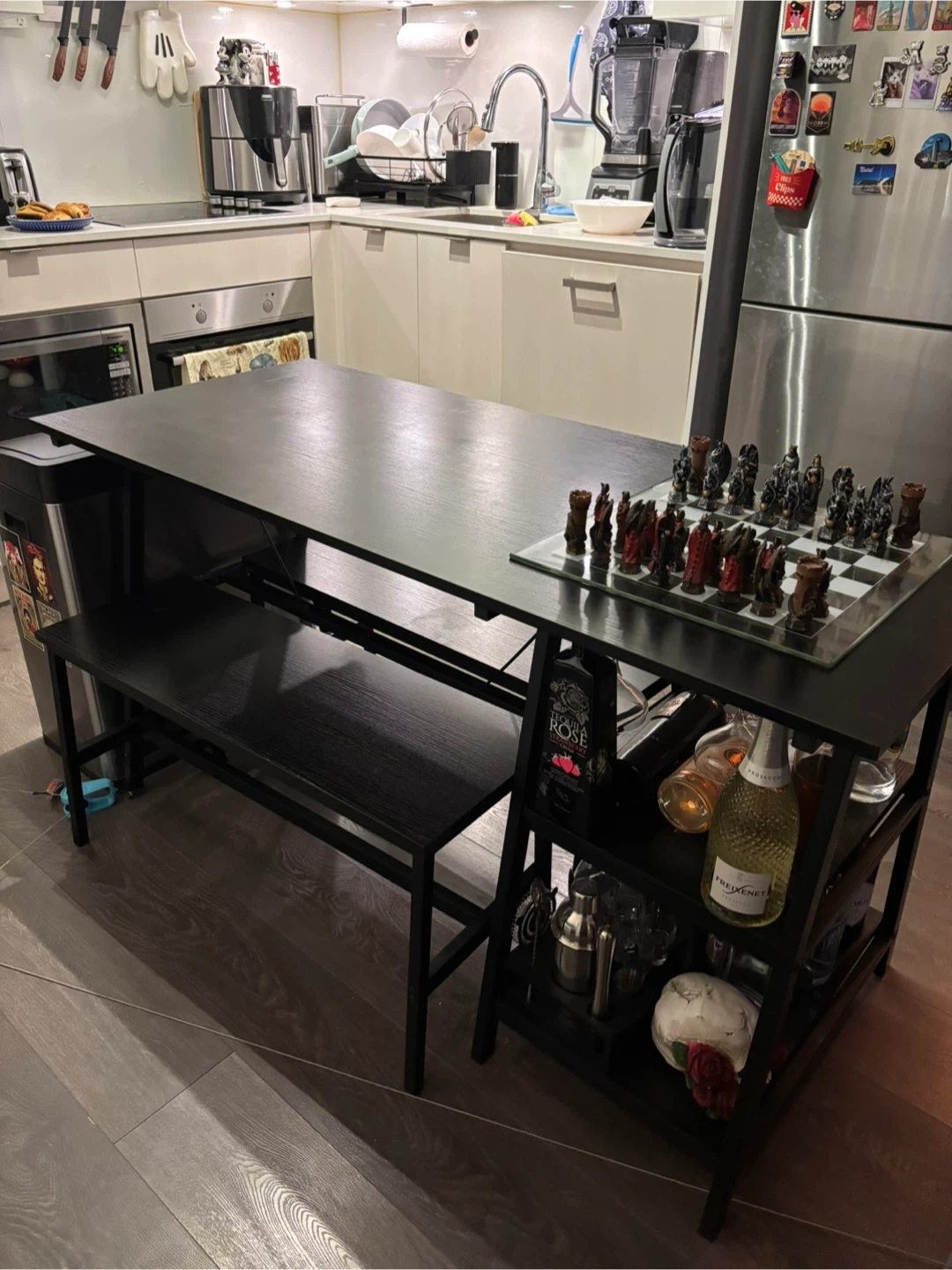 Sturdy Build: Heavy-duty black metal frame with a dark wood-finish tabletop.