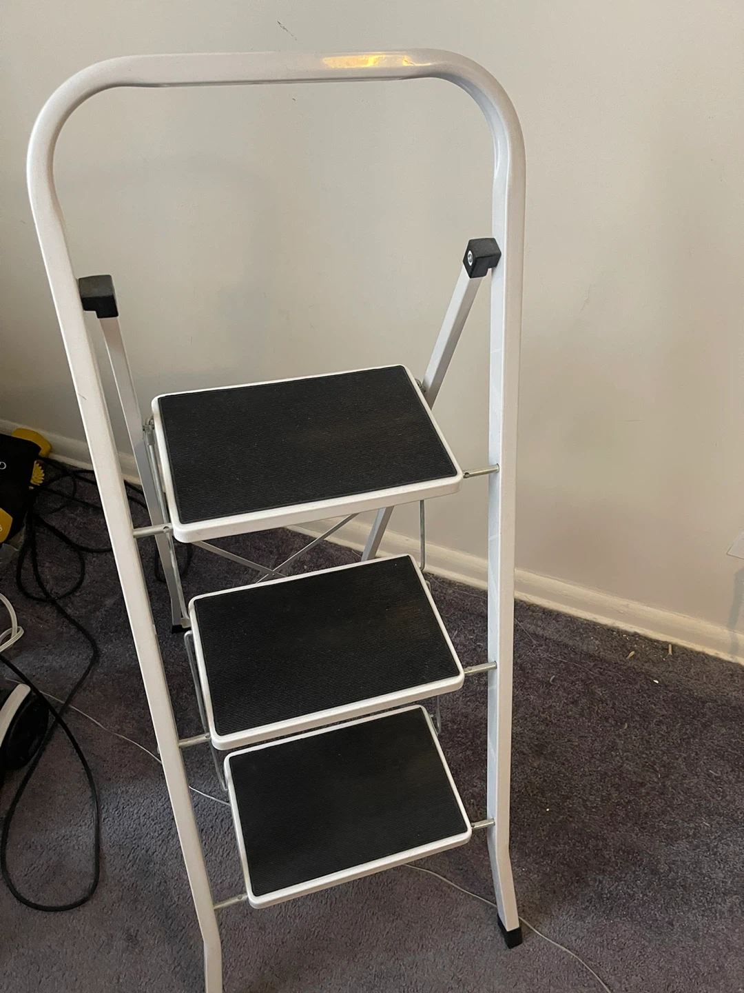 Here's a handy 3-step ladder, perfect for reaching those high shelves or tackling DIY projects around the house! It's sturdy and folds up easily for storage