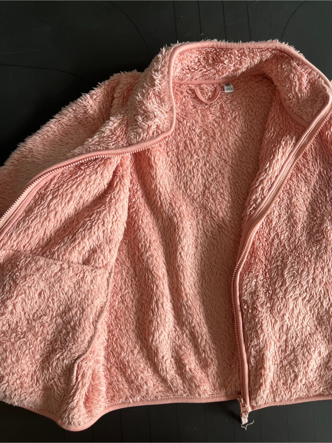 A cozy and soft Uniqlo fleece jacket in a lovely pink colour. It's a size 5-6 and in good condition.