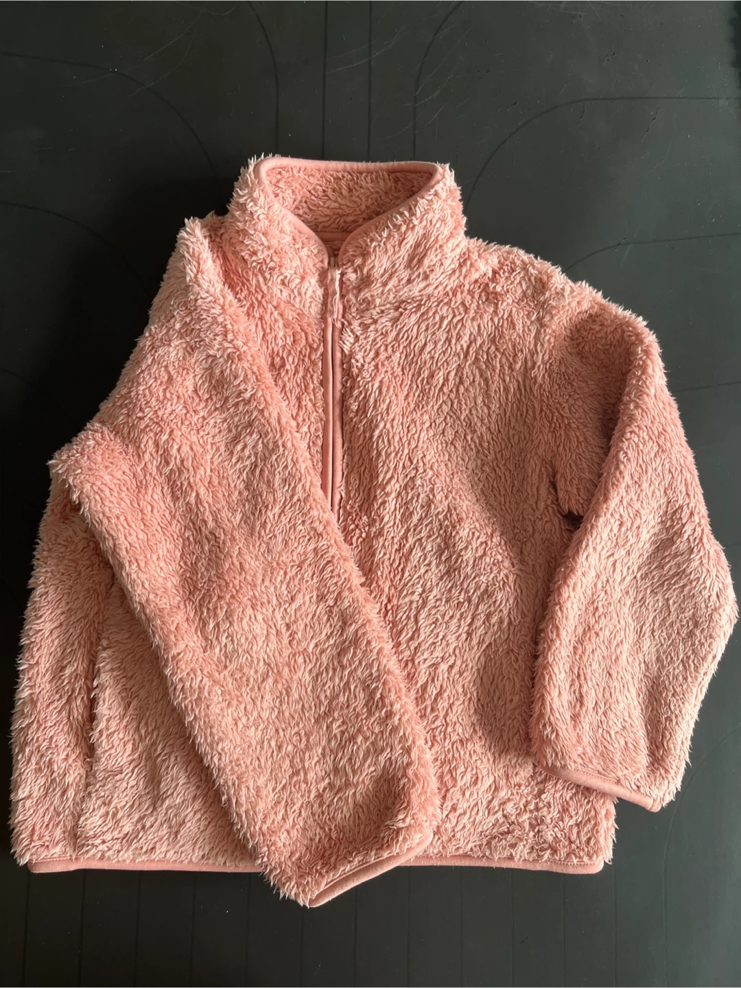 A cozy and soft Uniqlo fleece jacket in a lovely pink colour. It's a size 5-6 and in good condition.