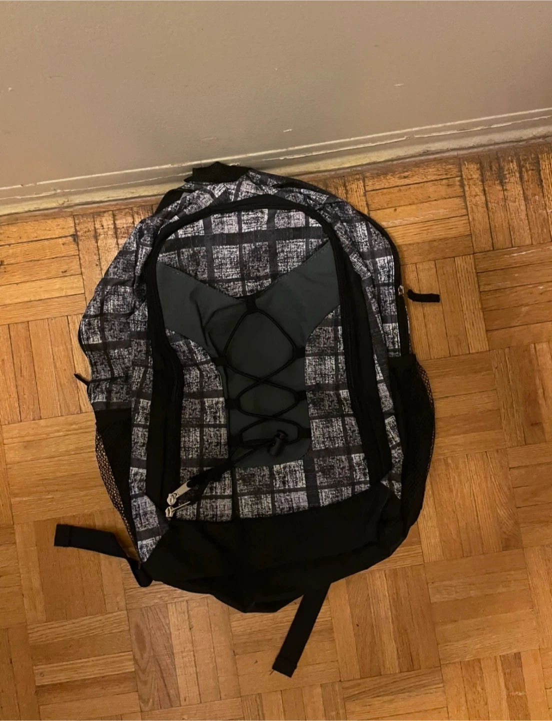 Grey and Black Plaid Backpack 🥕