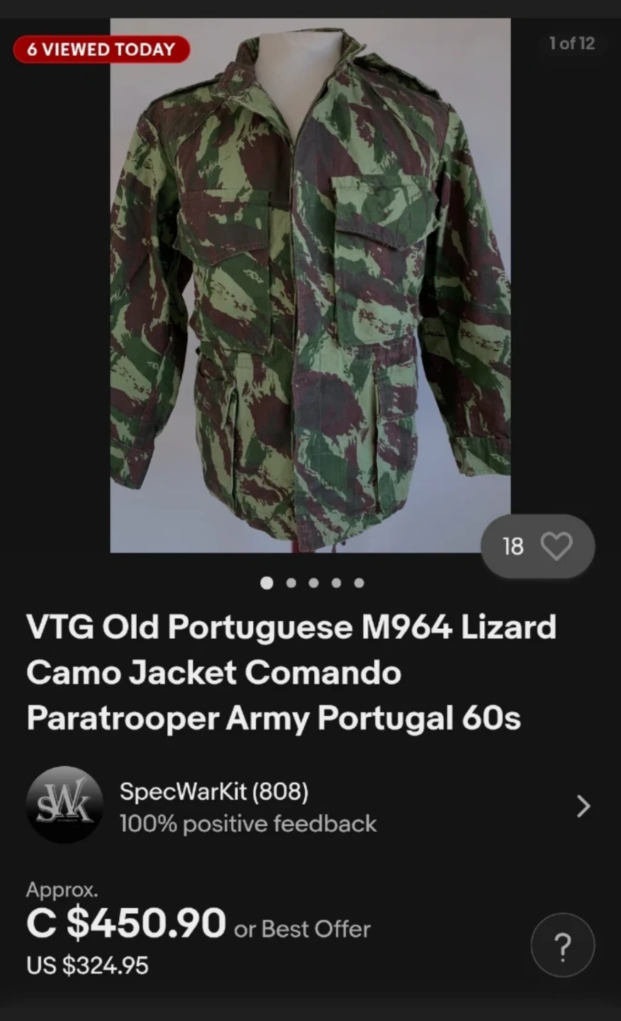 1975 Portugal Comando Paratrooper Lizard M164 Military Jacket