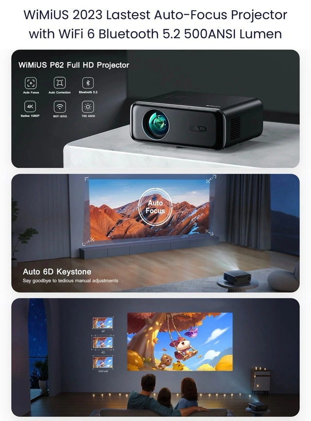 WiMiUS Outdoor Projector P62 WiFi 6 Bluetooth Full HD 1080P Portable Projector Supported 4K, 4D/4P Keystone, 50% Zoom, 300" Display. Great for home cinema, smartphones, TV sticks, PPT, and PS5. Used only once, so it's in excellent condition. Cash accepted, cashless payment also okay.