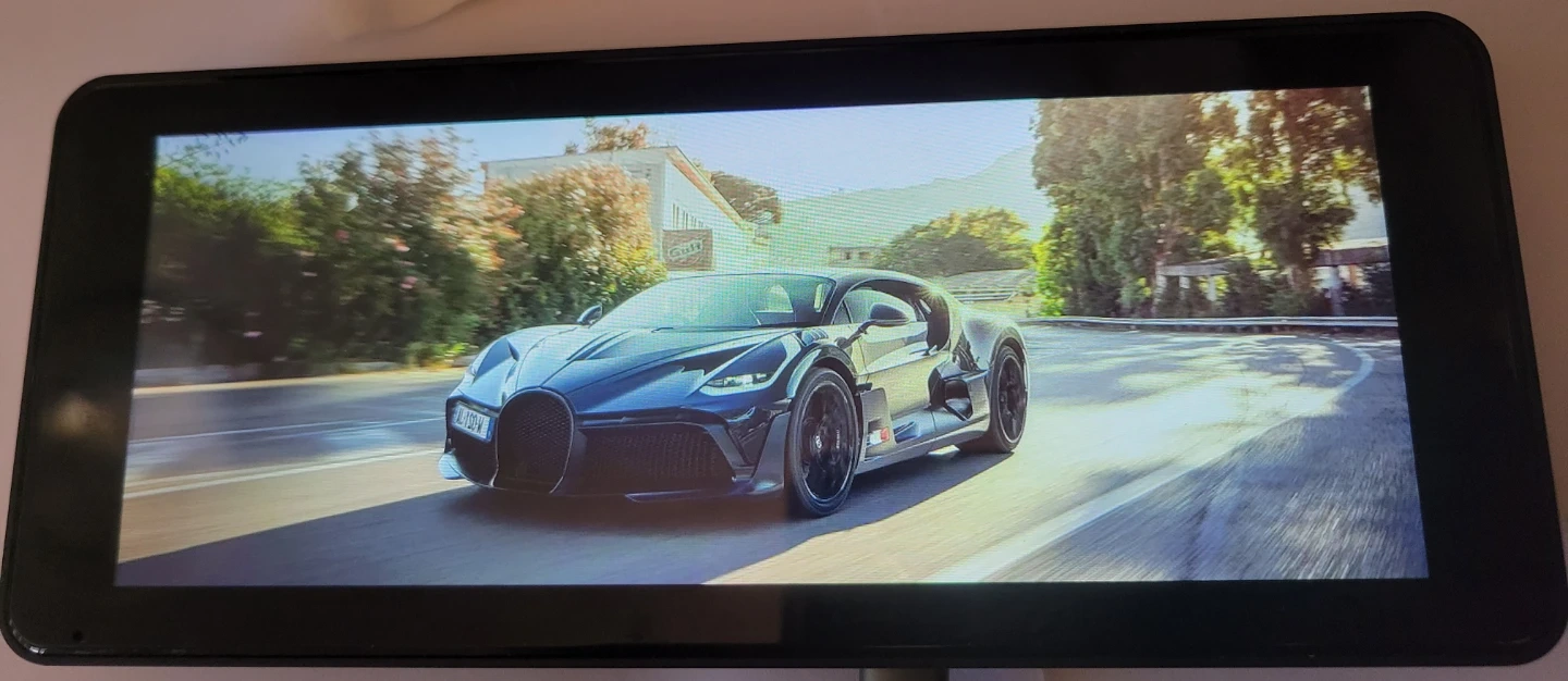 This portable car smart screen display supports Apple CarPlay and Android Auto. It connects via Bluetooth and includes suction cup and adhesive mounts. Screen size is not specified.