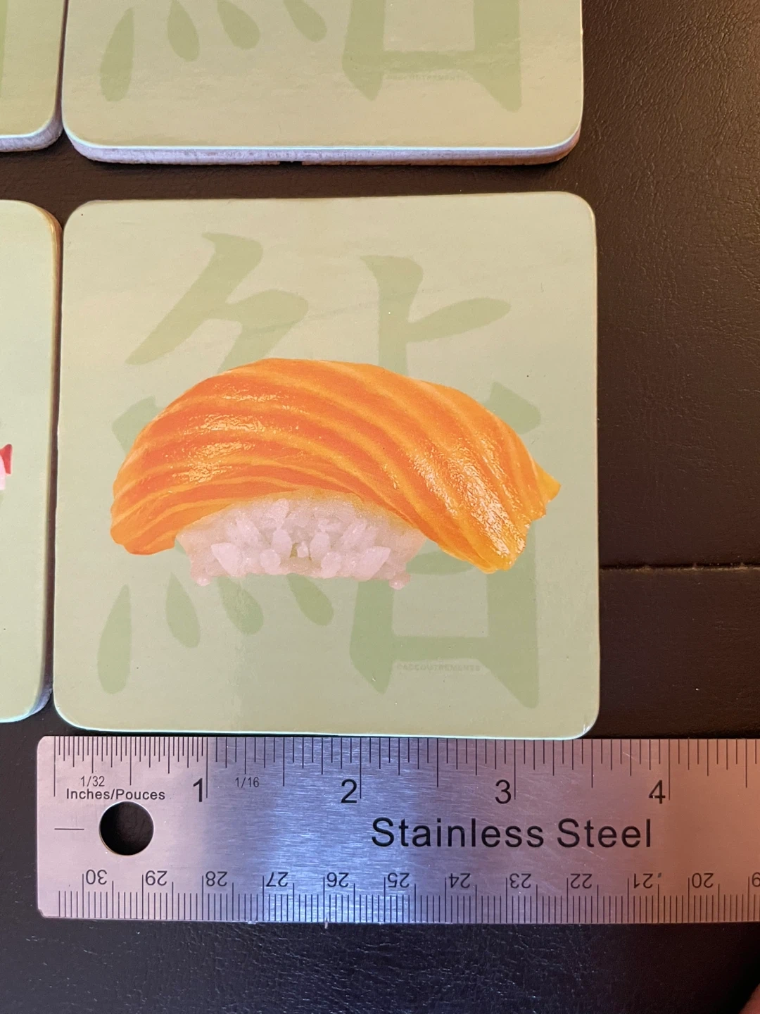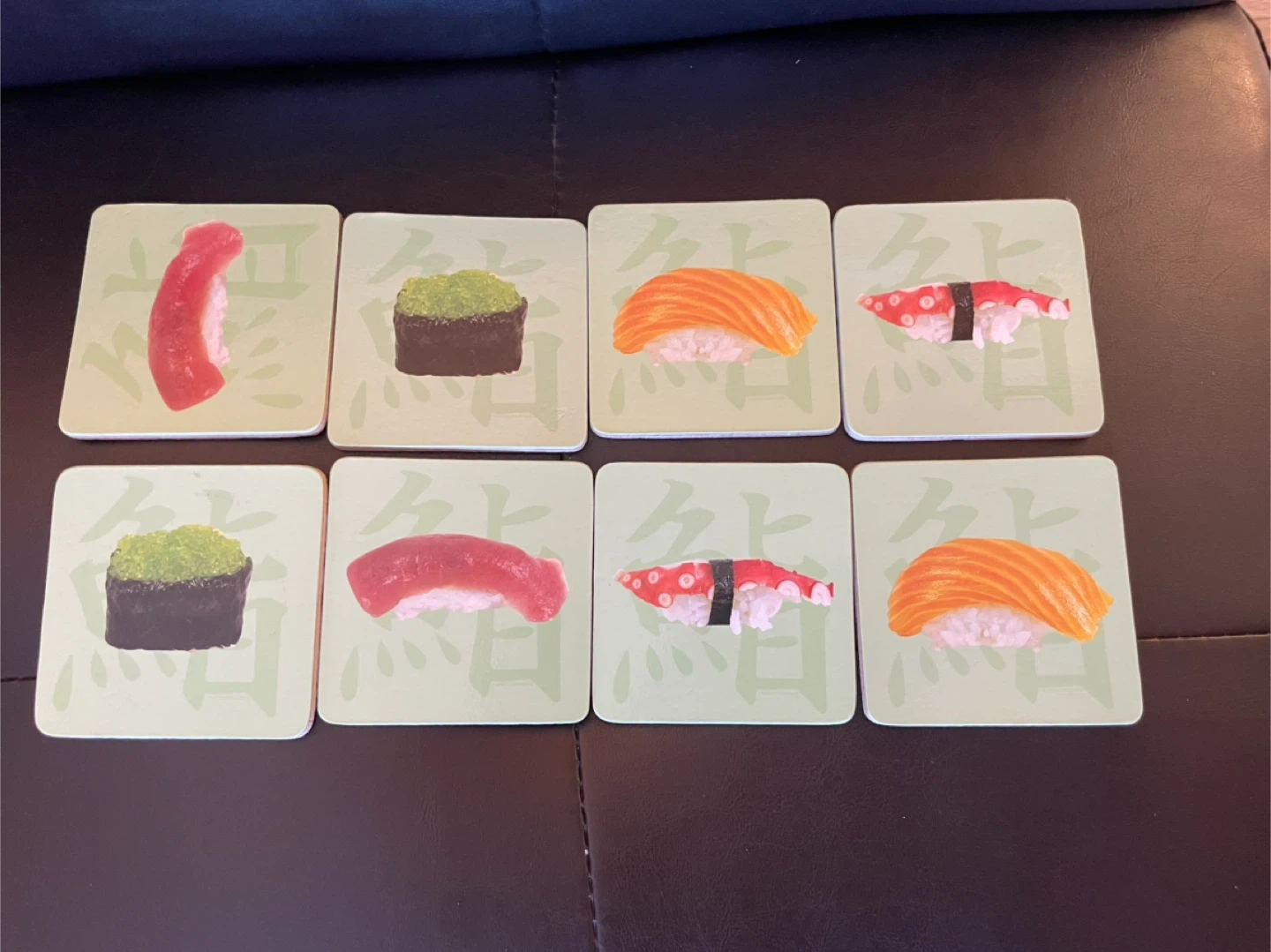 Selling a set of 8 sushi-themed coasters. They're in great condition and would be a fun addition to any home! They measure approximately 4 inches by 4 inches. Cork board backing