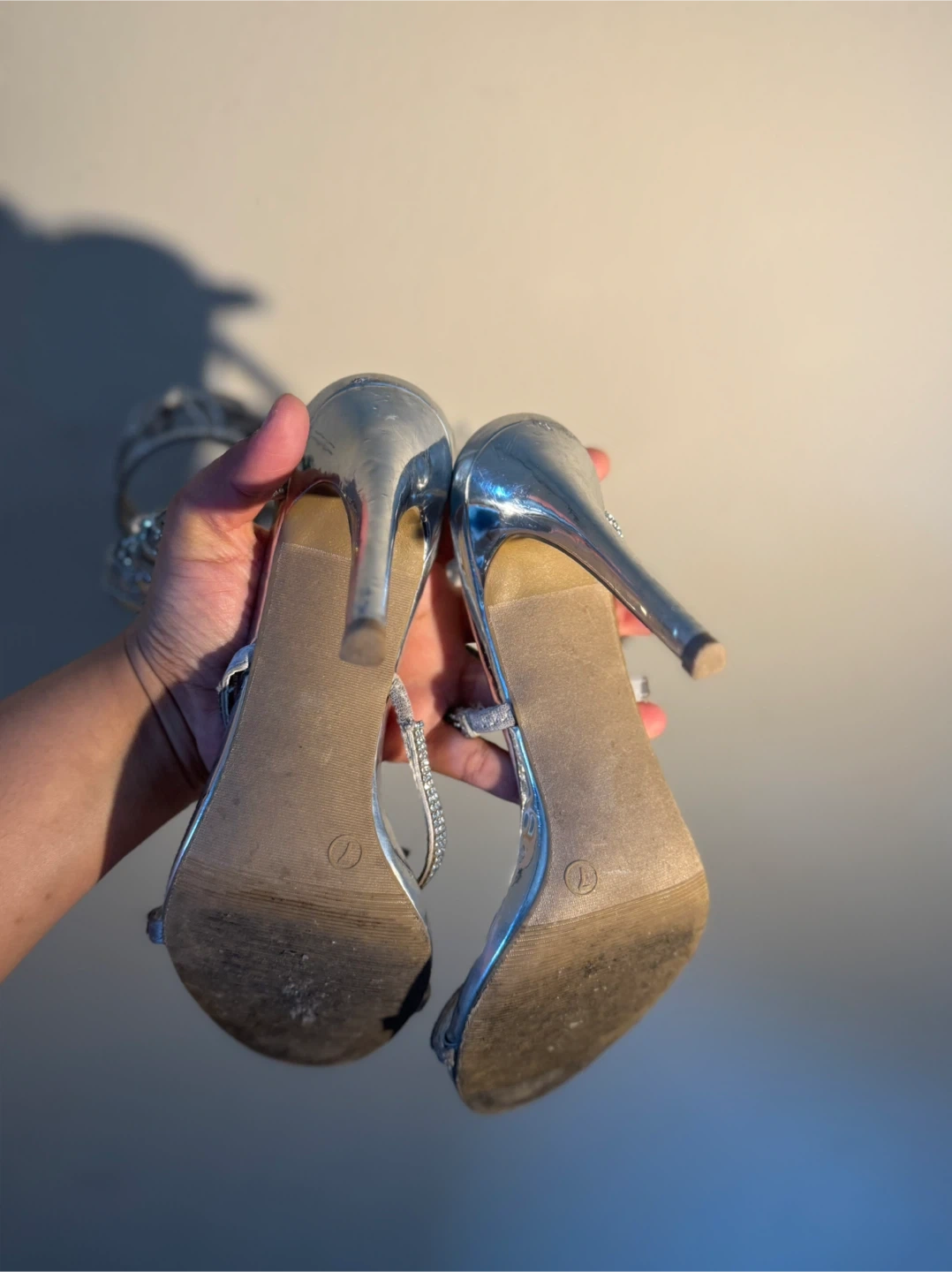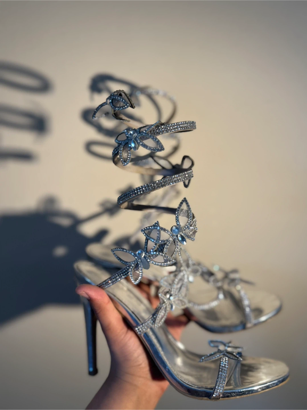 Gorgeous Refige silver heels with a unique spiral design and butterfly details! They're in great condition and ready for a night out. Size 7.