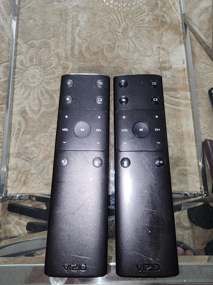 Selling a pair of Vizio TV remotes. They show some signs of use, like light scratches, but are fully functional. Perfect as replacements or spares for your Vizio television