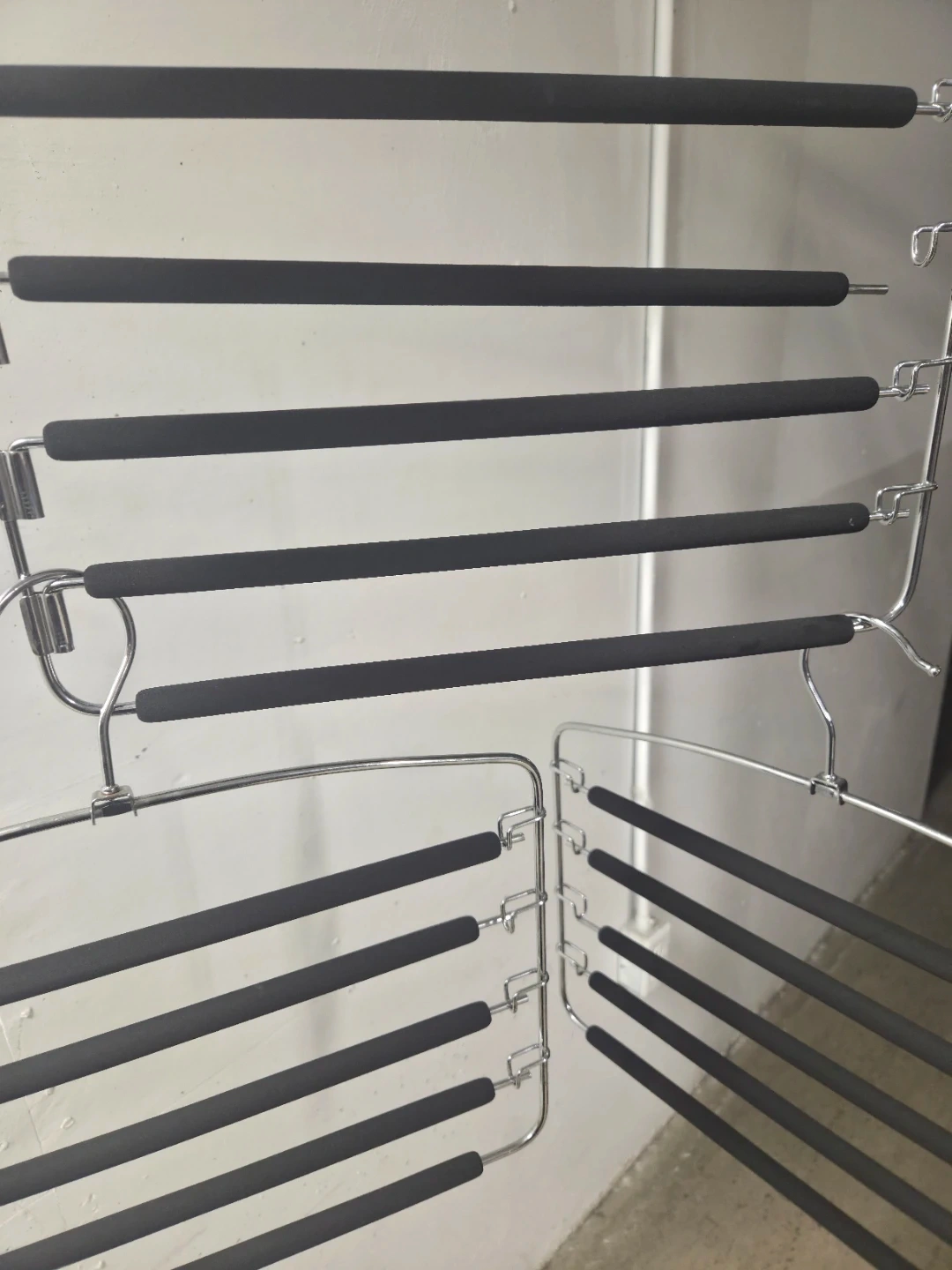 70Selling a 6 x multi-layer pants &. Clothe hanger! It's a great way to organize your closet and save space. The hanger is made of metal and has a padded design to prevent creases or slips in your clothes.