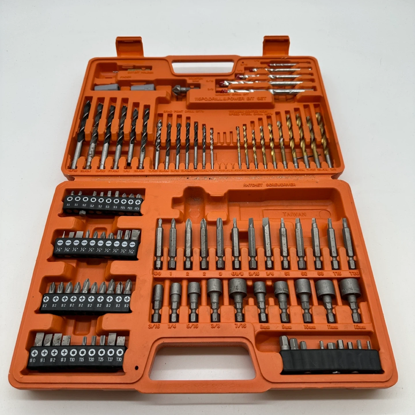 119Great mixed set of drill bits and screwdriver bits β perfect for home repairs, DIY projects, furniture assembly, electronics, automotive work, and more. Comes with: πΈ Drill bits (wood, metal, and general-purpose) πΈ Phillips, flat, Torx, and square bits πΈ Nut drivers πΈ Long & short driver bits πΈ Organized orange hard case πΈ Made in Taiwan (quality steel) Everything is clean and ready to use. β Condition Used but in excellent working condition β no damaged bits. Comes exactly as pictured. π Pickup: North York π Delivery available for extra fee SKU: 292-Tool Rack