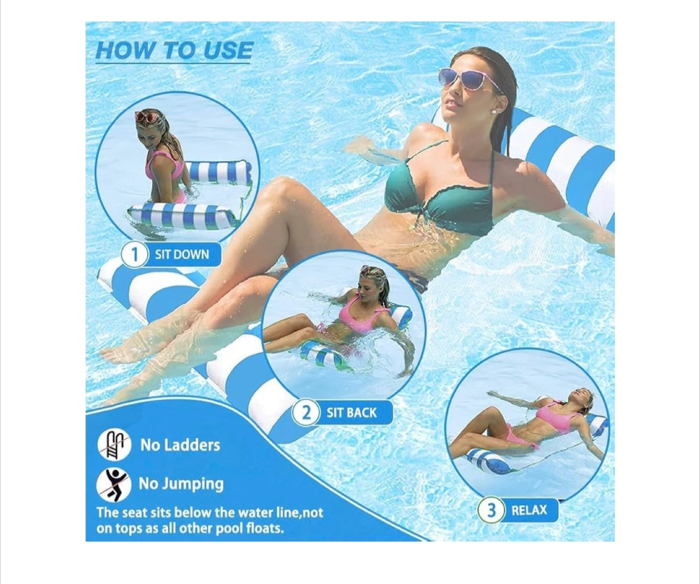 Get ready for summer fun with this brand new, multifunctional pool float! It can be used as a lounge chair, drifter, hammock, or saddle. Perfect for relaxing in the pool on a hot day! Few colours are available.