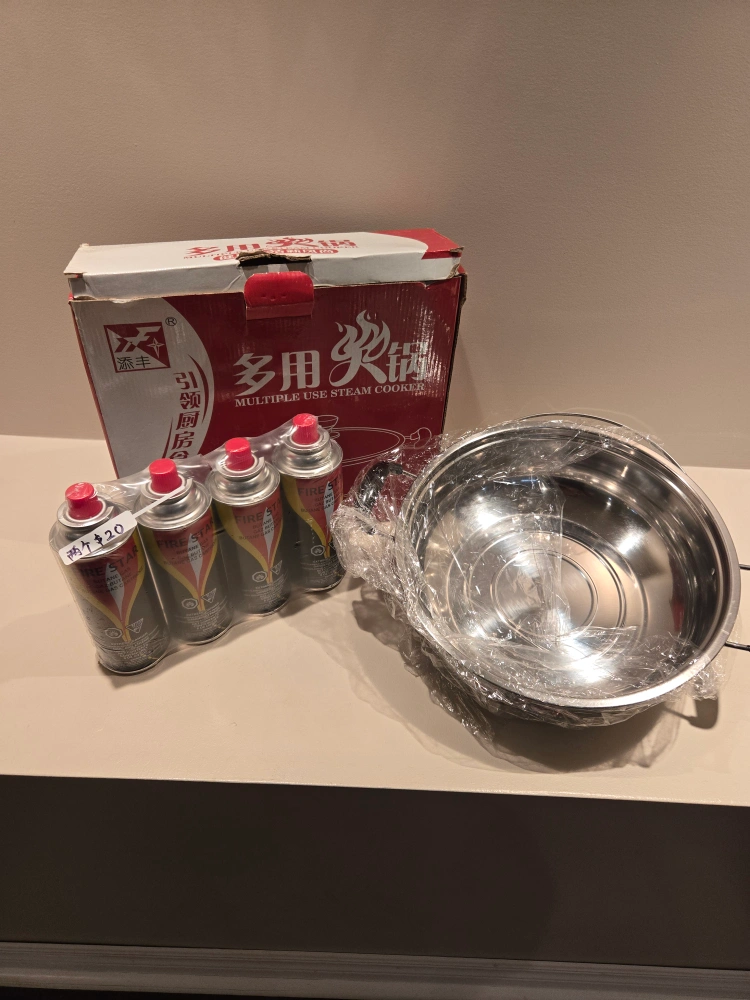 75Selling a multiple use steam cooker. It comes with Fire Star butane canisters. The box is included.