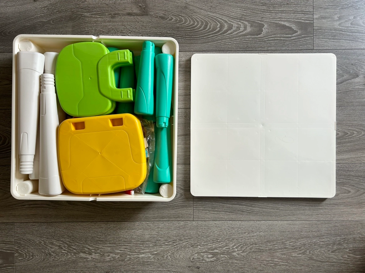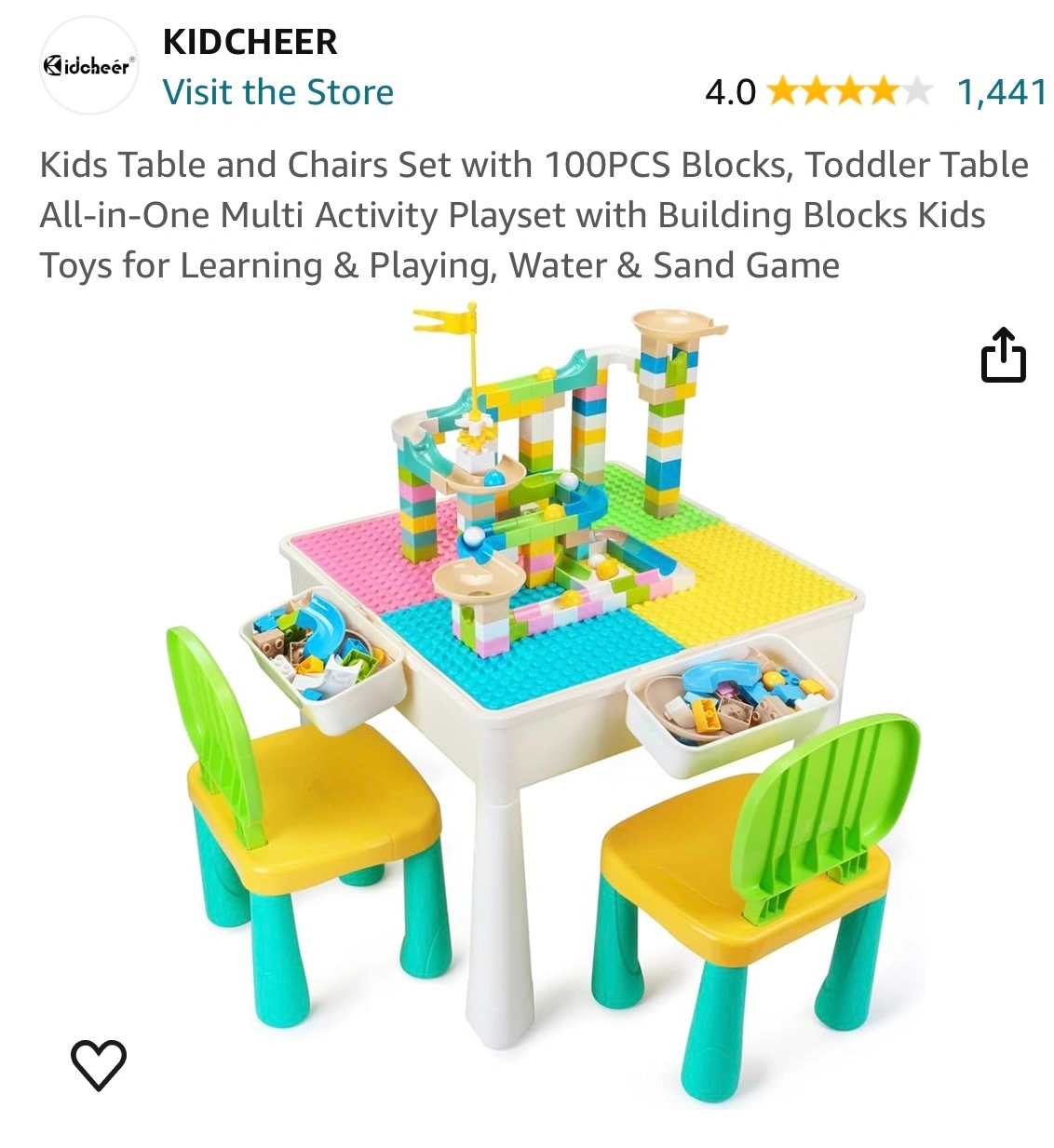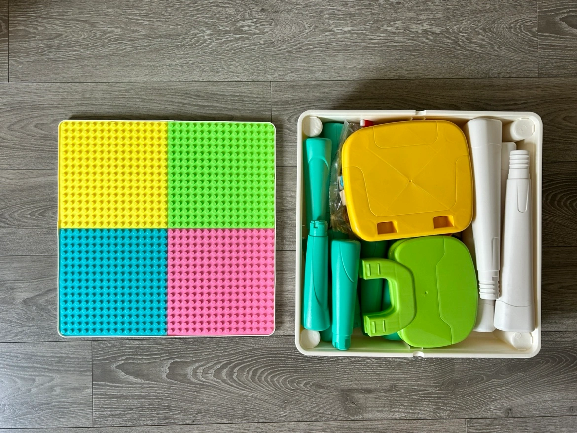 15For sale! Multipurpose building block table for kids. Candy colour. Kids table and chairs set Brand new. Never used. 100 pc blocks Toddler table All in one multi activity play set with building blocks Kids toys for learning and playing, water and sand Retails for $99.99 Selling for $75.