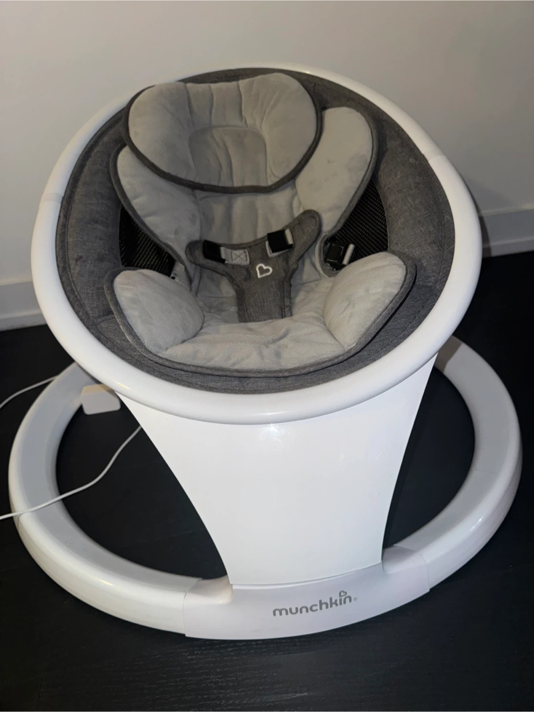 68Selling a Munchkin baby swing in great condition! It's perfect for keeping your little one comfortable and entertained. It has a remote control. This swing has a cozy design and is easy to use. It's been well-cared for and is ready for a new home!