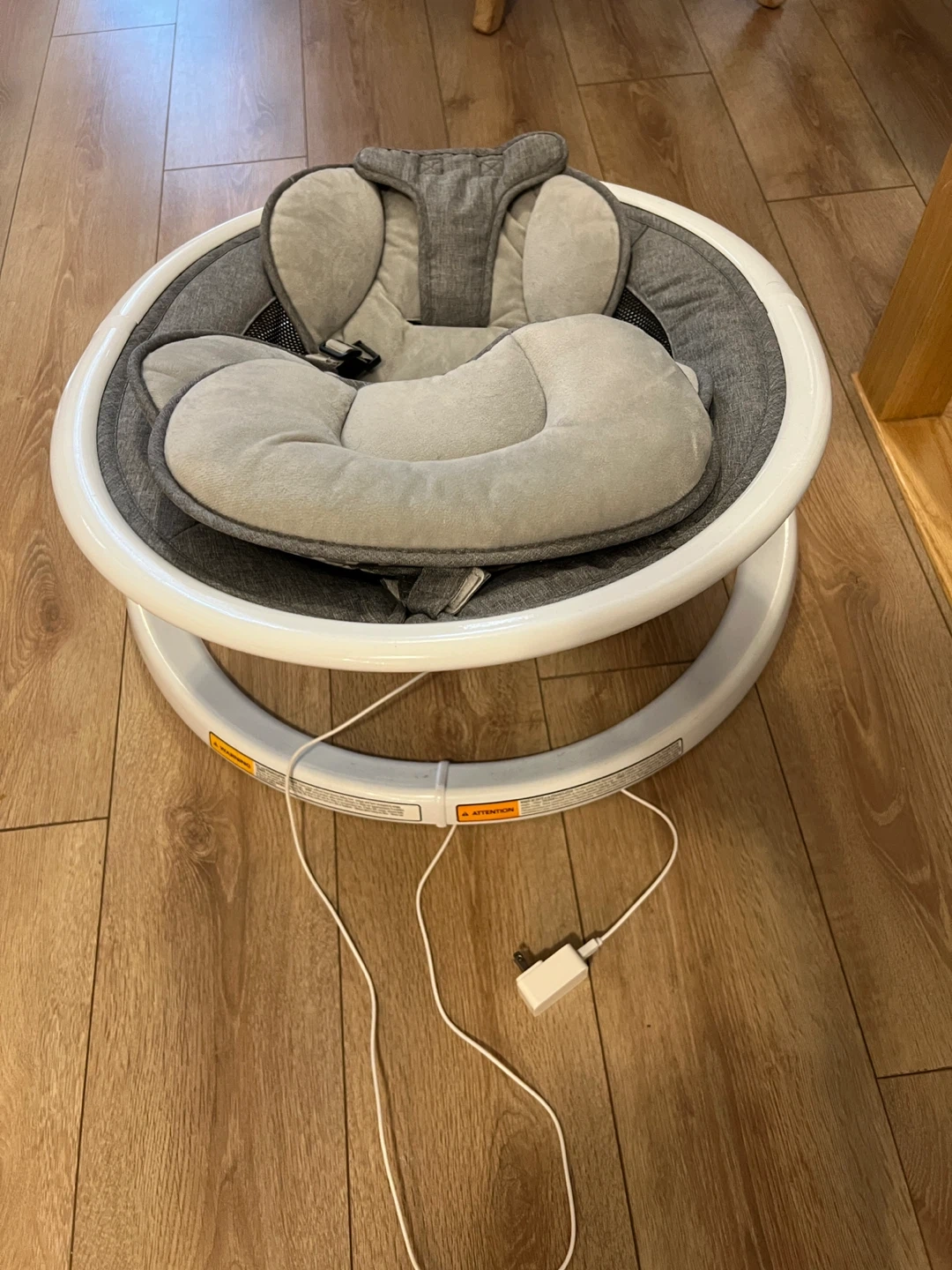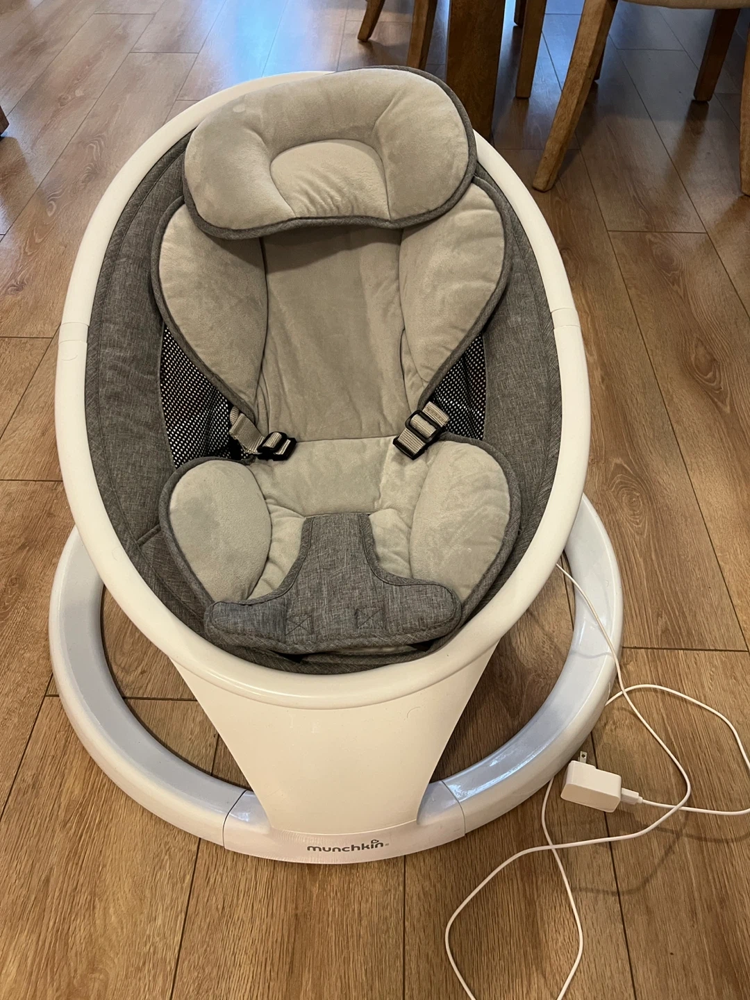 As good as new- Munchkin Baby Swing in excellent condition. Designed to soothe your little one with 5 motion settings and natural side-to-side swaying, it mimics parents’ comforting movements. Features include: • Soft, removable seat pad for easy cleaning • Adjustable 5-point safety harness • Remote control to adjust settings • Lightweight and easy to move around the house • Sleek, modern design that fits any home Perfect for keeping your baby calm and comfortable while giving you hands-free moments. ✨ Clean, smoke-free, pet-free home. 💲 Price: 140 New one retails for 250 plus tax
