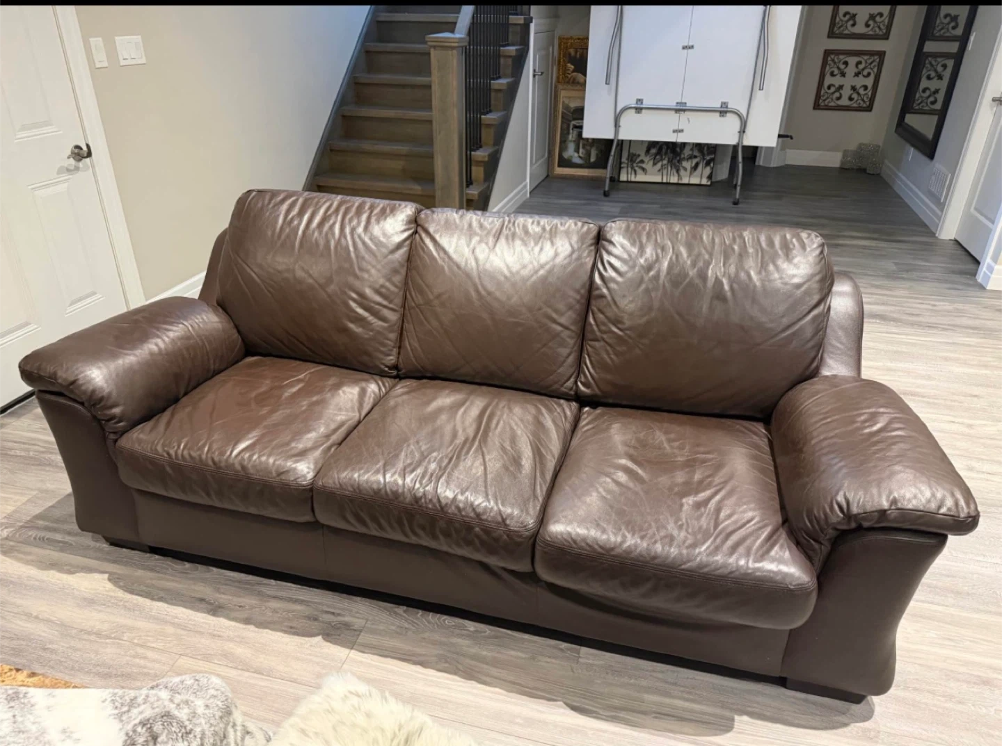 Selling 2 full size couches made of real genuine leather. Beautiful brown colour that adds a warm, classic look to any space.