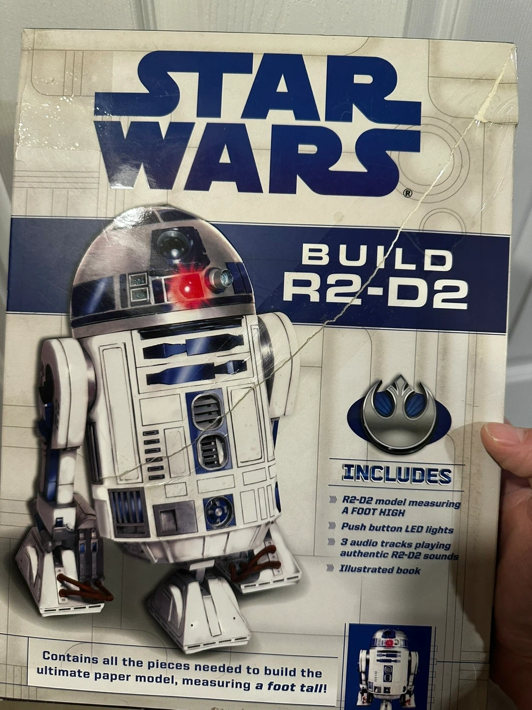 Build your own R2-D2 paper model measuring a foot high! It includes push-button LED lights and 3 authentic R2-D2 sound tracks. An illustrated book is also included to guide you through the build.