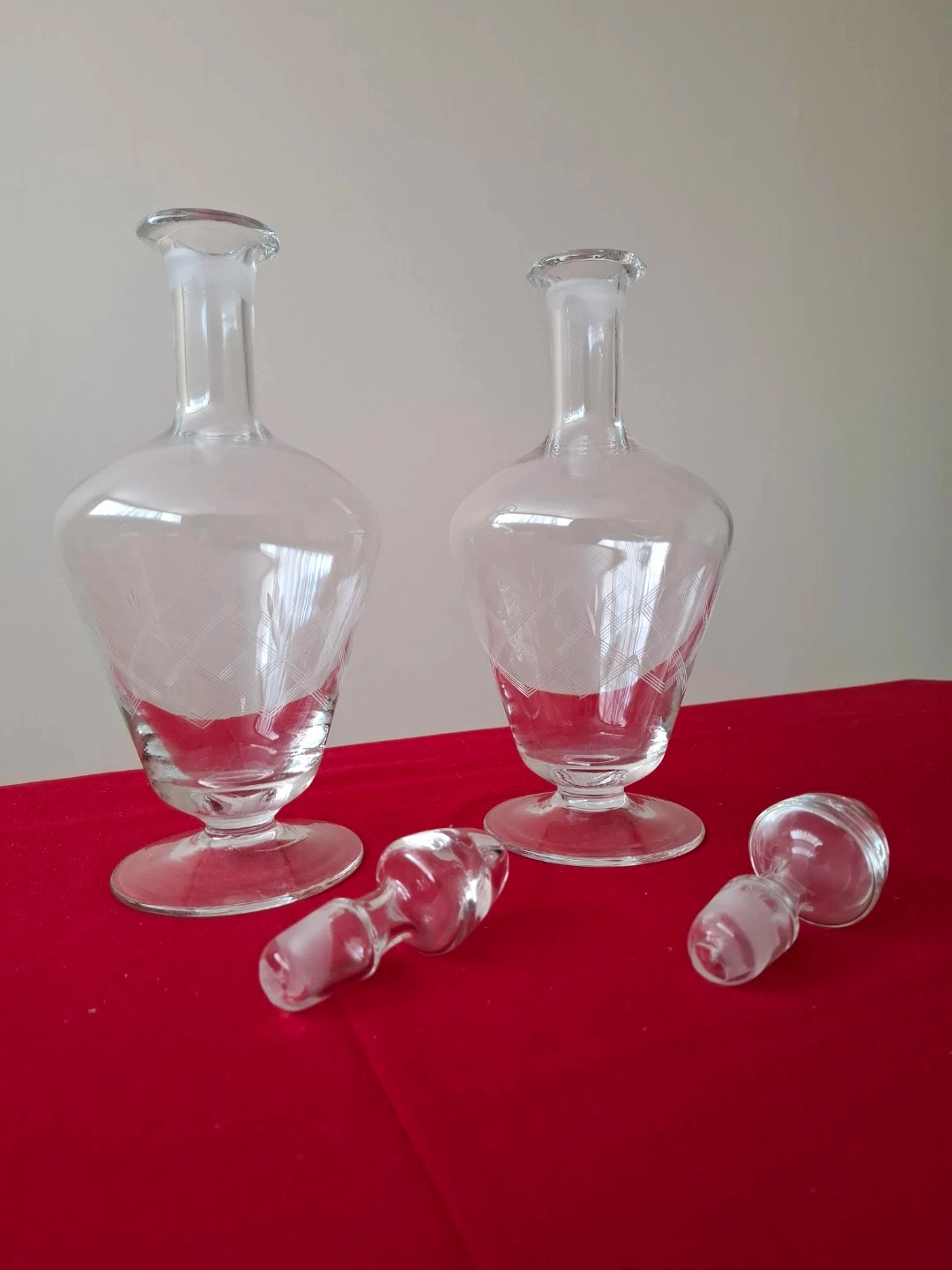 Set of 2 Etched Glass Decanters