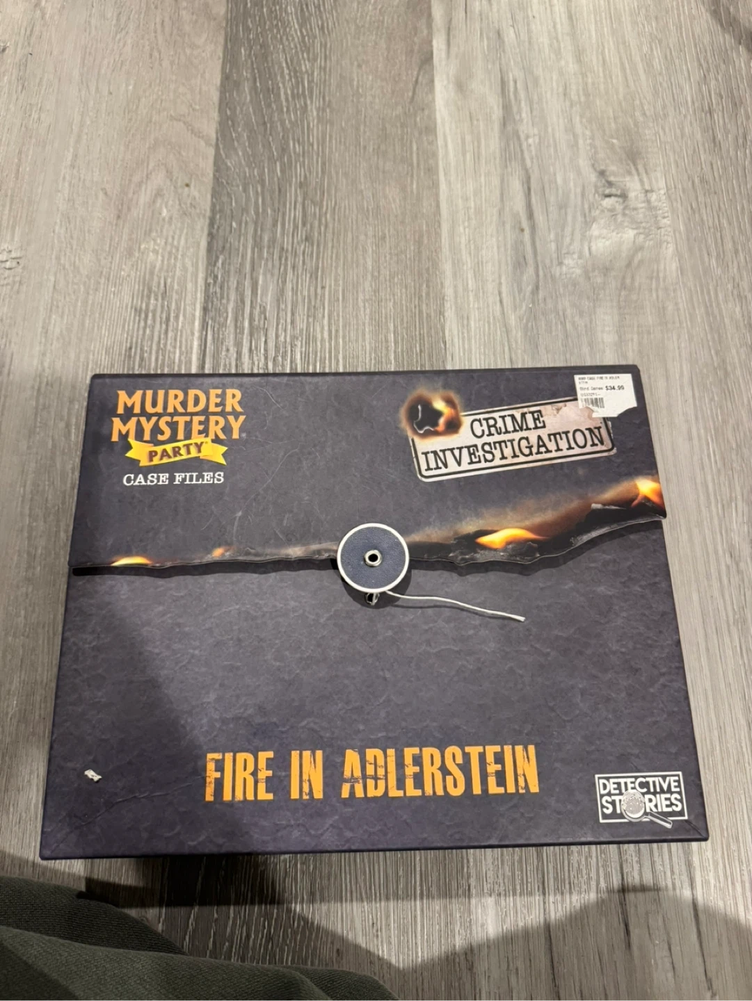 55Selling a Murder Mystery Party Case Files game called Fire in Adlerstein! It's a detective stories game where you investigate a crime scene to solve the mystery. Perfect for a fun night in with friends or family Perfect condition, everything included