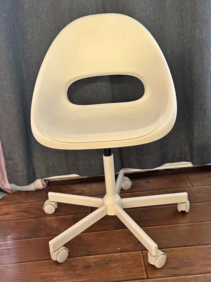 Selling a modern white swivel desk chair in excellent condition. This is the best-selling IKEA desk chair, currently priced at $69 new. • Smooth rolling wheels • Adjustable height • Comfortable curved back with ventilation cut-out • Sturdy 5-leg base • Lightweight and easy to move • Clean and well-kept, no cracks or damage Perfect for a home office, study space, or kids’ room.