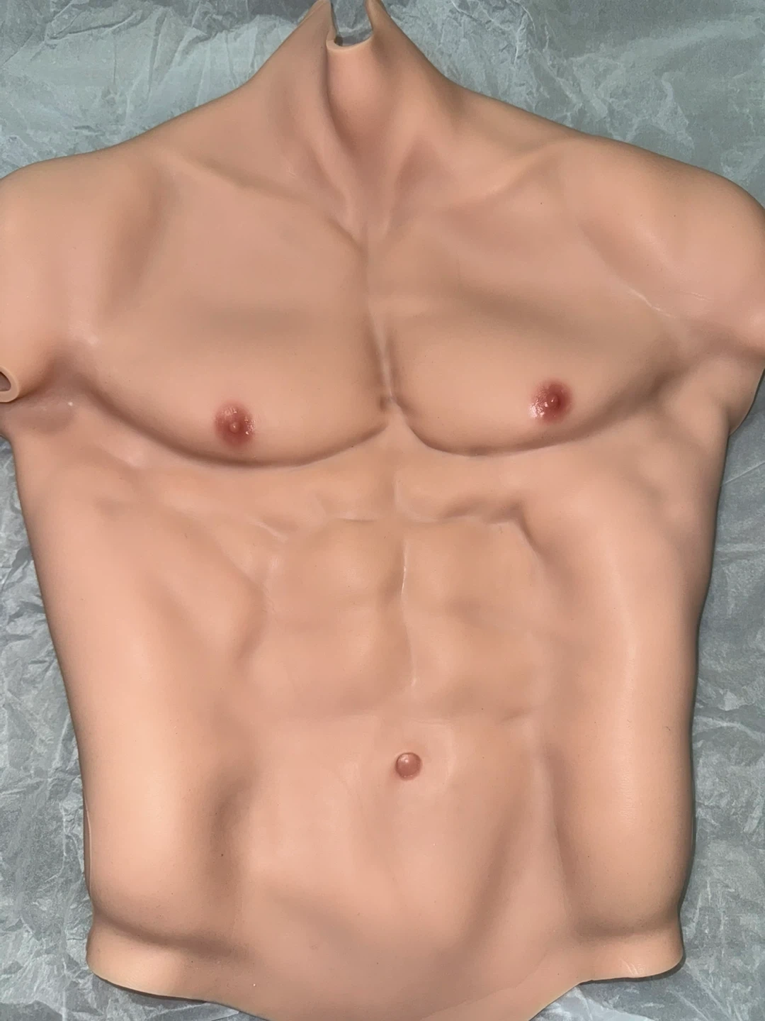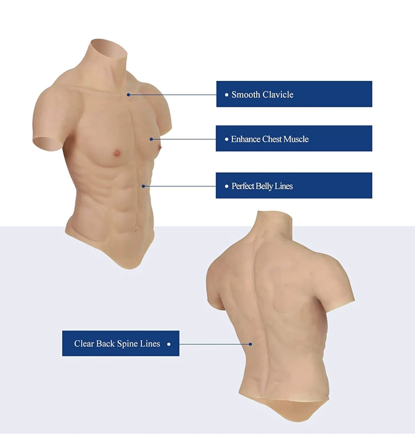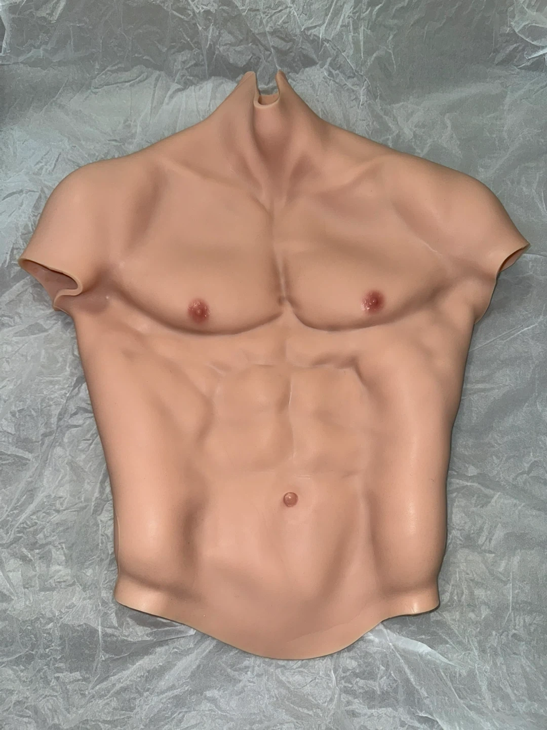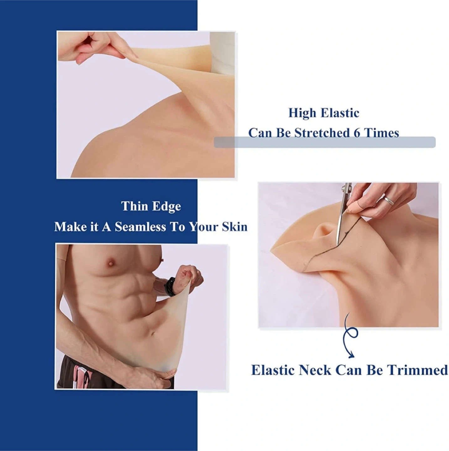 261Get that perfect physique instantly with this muscle chest silicone vest! It's designed to be high elastic and can be stretched 6 times. The thin edge makes it seamless to your skin, and the elastic neck can be trimmed for a perfect fit. Features smooth clavicle, enhanced chest muscle, and perfect belly lines. Also includes clear back spine lines and realistic blood vessels. Natural color