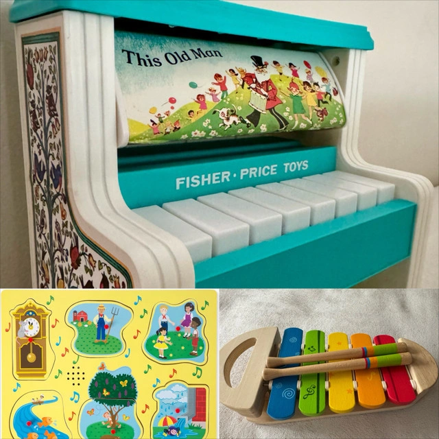 27A perfect starter set for your child's musical journey! This bundle includes: 1) Fisher-Price Wooden Xylophone 2) Fisher-Price Change-a-Tune Piano 3) Melissa & Doug Sing-Along Nursery Rhymes Sound Puzzle All items are in excellent condition and come from a smoke-free home. (Check my other listings for more.)