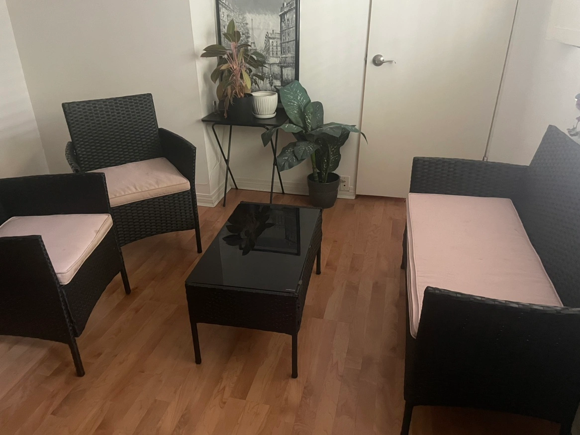 5Retails for $218 Need to sell ASAP! Its a lovely set, im just moving and it won’t fit in my new place. A 4 piece patio conversation set including two chairs, a loveseat, and a coffee table with a glass top. https://a.co/d/j1yVLmT The love seat is missing a screw, but could easily be fixed.