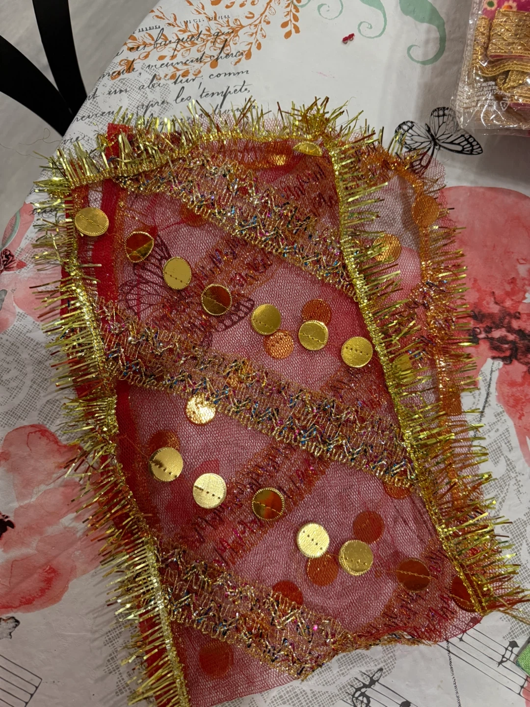 Embellished Fabric Scraps - Red, Orange, Yellow