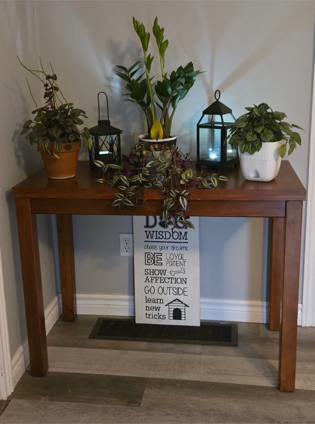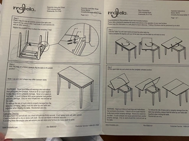 Beautiful and versatile Innobella Montessa Buffet Table (Model: MNTB). This is the perfect solution for apartment living or hosting! It features a unique swivel-and-fold top that allows it to function as a slim hallway console/buffet or quickly expand into a full-sized square dining table. Brand New in box, I have numerous in boxes. Rich Cherry/Mahogany wood finish. Dimensions (Folded): 20’W x 40’ long x 29.5’ H. Dimensions (Expanded): 40’ W x 29.5” Tall. Key Features: Sturdy solid wood legs, easy-to-use 90-degree swivel mechanism, and a double-leaf folding top. Price: $140. Located in Beaverton.