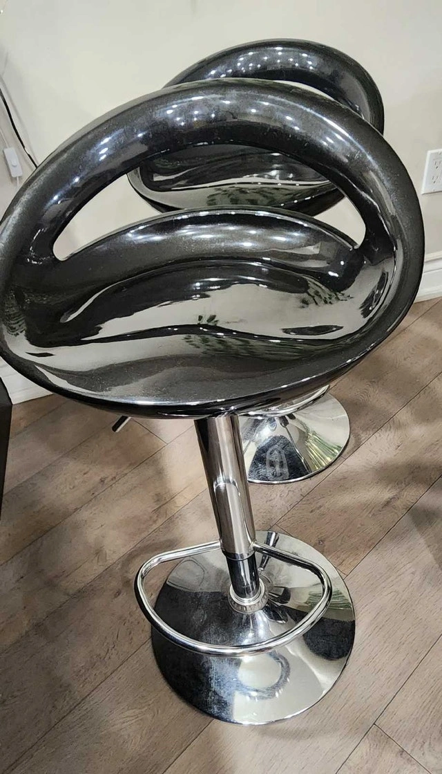Add a touch of modern elegance to your kitchen or bar area with this stylish bar stool! This used stool features a sleek black seat and a shiny chrome base. The unique design will definitely catch the eye! If the ad is still up, the stool is still available. This stool is ready to find its forever home.