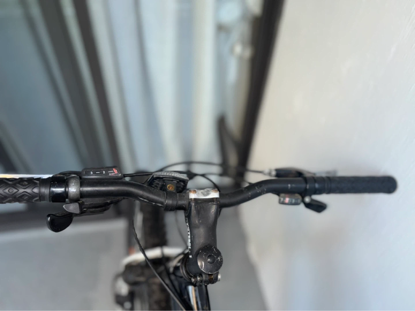 This is a CCM Bikes mountain bike. It's black with disc brakes and has Shimano gears. Ready for your next trip! In perfect condition and you can negotiate