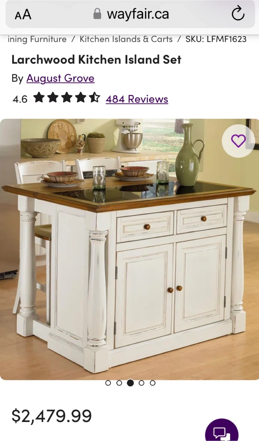 Beautiful and sturdy kitchen island set featuring a granite inlay prep area and ample storage cabinets. It includes two matching bar stools. There's a drop-leaf extension for eating. SEE PHOTOS FOR MEASUREMENTS AND MORE DETAILS.