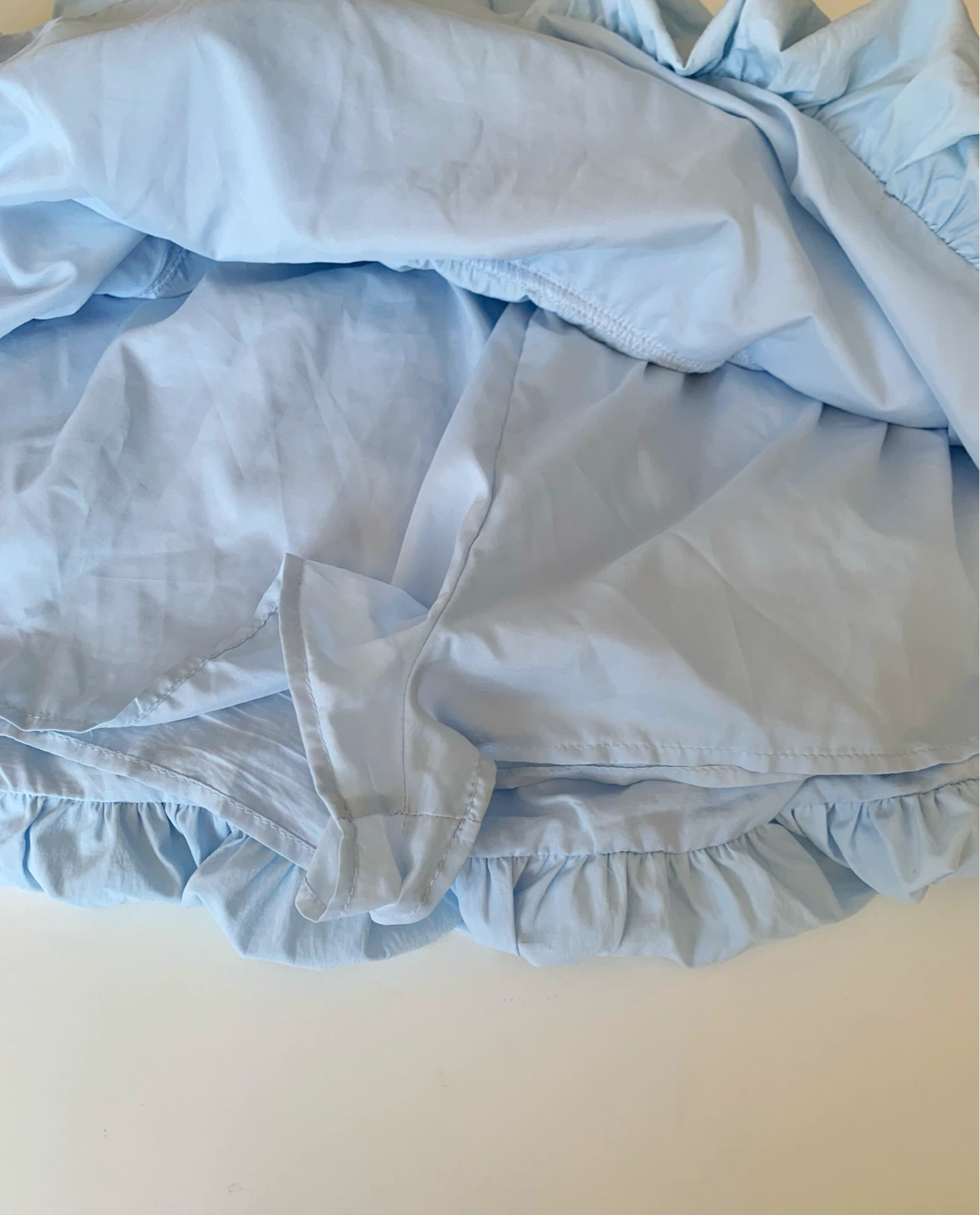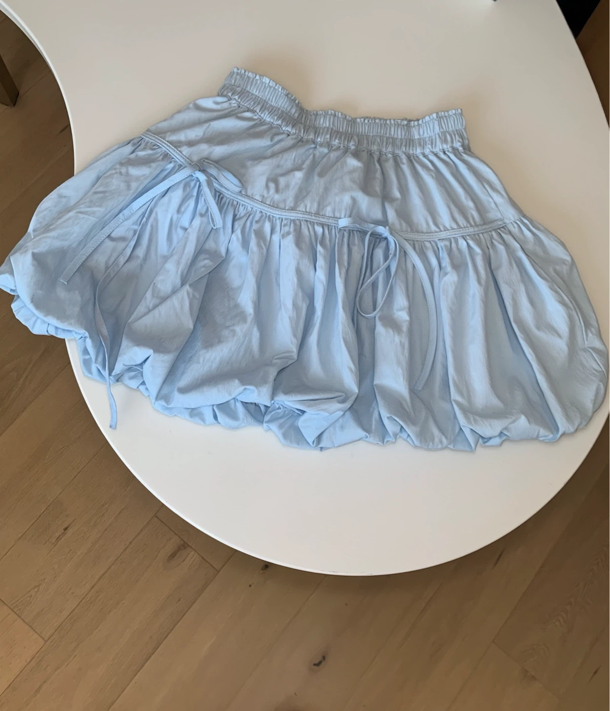 Light baby blue mini skirt with a cute puff / bubble shape and ballet-inspired design.