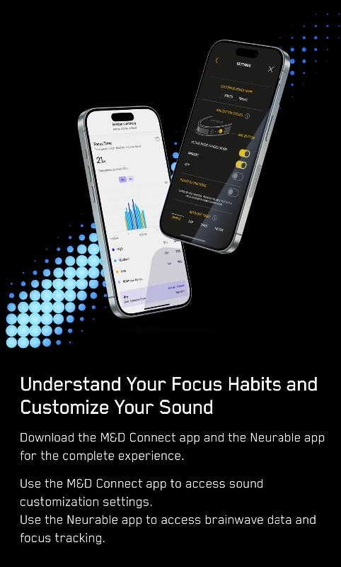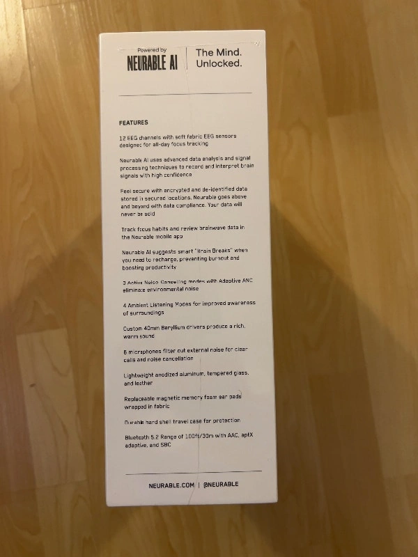 MW75 Neuro Smart EEG Active Noise-Cancelling Wireless Headphones The Mind, Unlocked Your brain's neurons produce electrical signals collected by silver thread soft electroencephalography (EEG) sensors on our custom memory foam ear pads. These signals are processed using a proprietary brain-computer interface (BCI) for state-of-the-art focus tracking without sacrificing comfort. Work Smarter Neurable's brain-computer interface sends brain signal data to the Neurable app, where it's converted into actionable insights. Access your focus score, track changes over time, and determine when you concentrate best. Pause to Prevent Burnout Once enough information is collected, you'll be able to activate Brain Breaks which automatically prompt you to take a pause when you're losing focus or approaching burnout. Includes a complimentary extra pair of non-EEG memory foam ear pads wrapped in lambskin leather, designed for all-day listening.