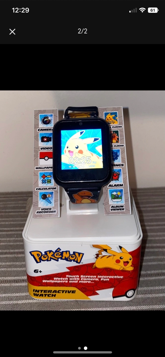 Selling a Pokémon Interactive Watch in excellent condition! It comes with a box and features various interactive wallpapers and more. It's designed for ages 6+
