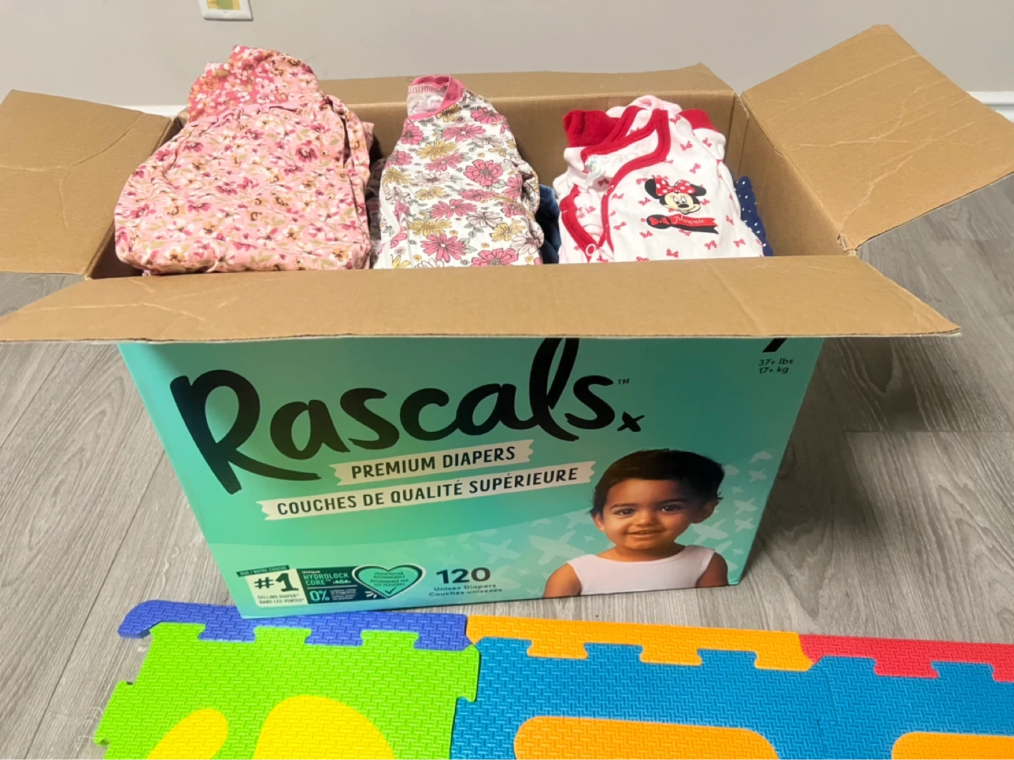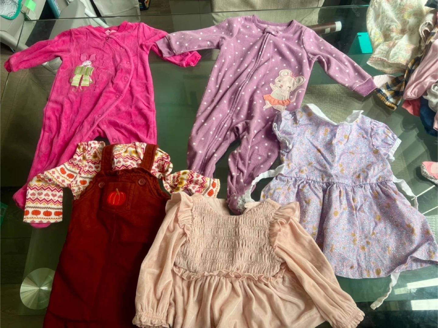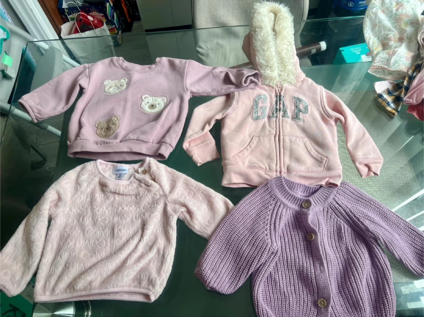 More than 60pcs of mixed clothes. Brands are calvin klein, tommy hilfiger, baby gap, carters, baby Bgosh (osh kosh), Disney, Gymboree, etc.