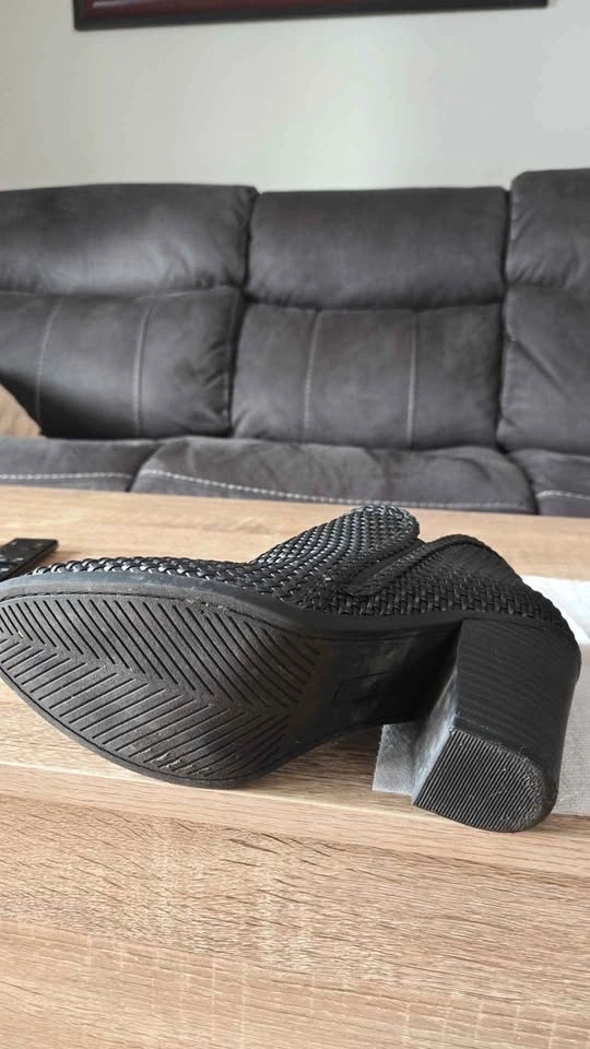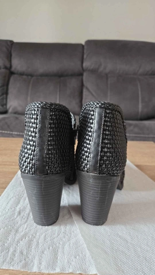 Stylish black woven ankle boots with a cool textured design and block heels. Side zippers make them easy to put on. Great for many outfits. Brand new. Pick up in Niagara Falls. From a pet and smoke-free home.