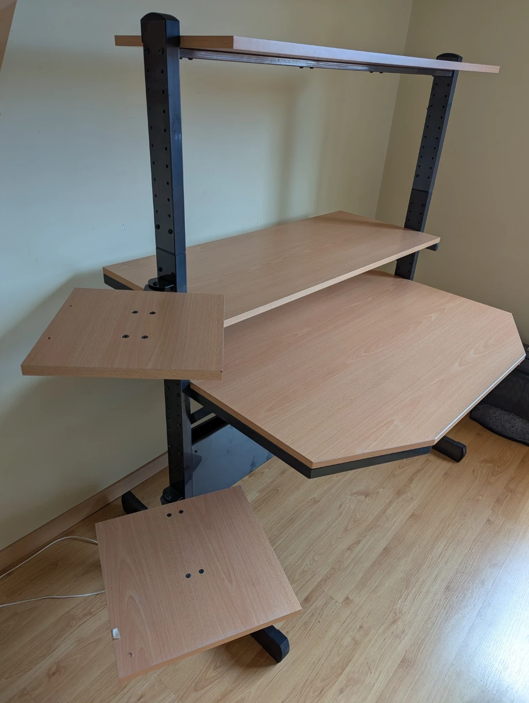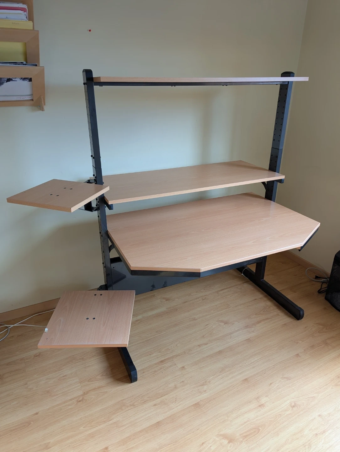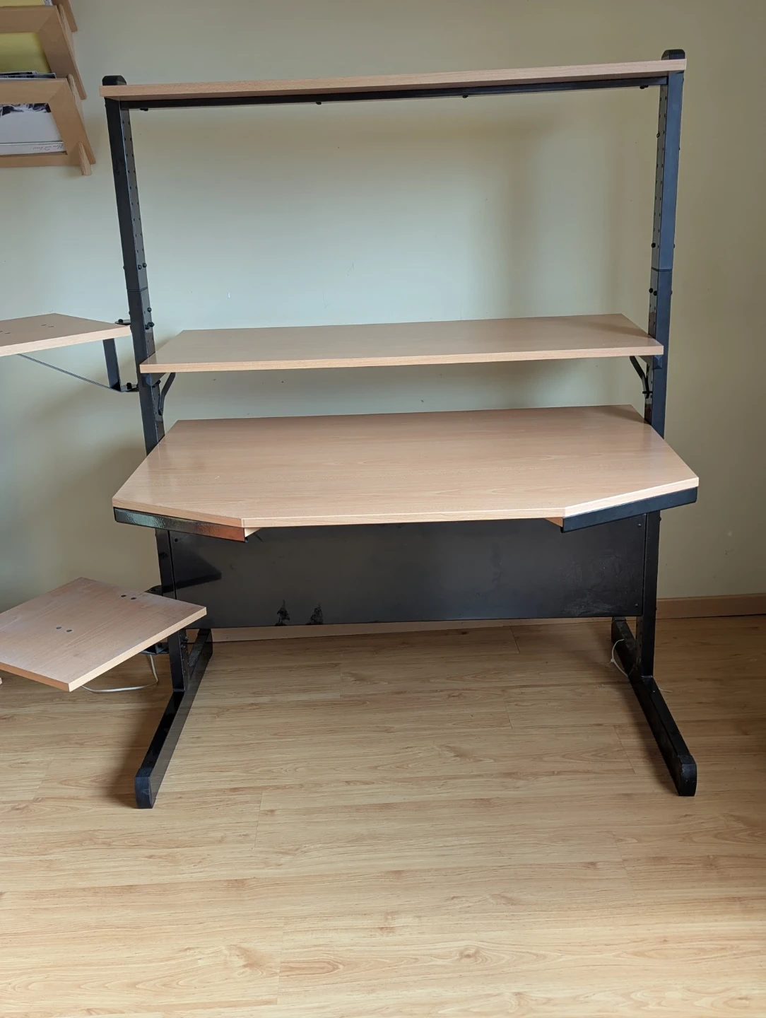- Adjustable desk height and adjustable top shelf